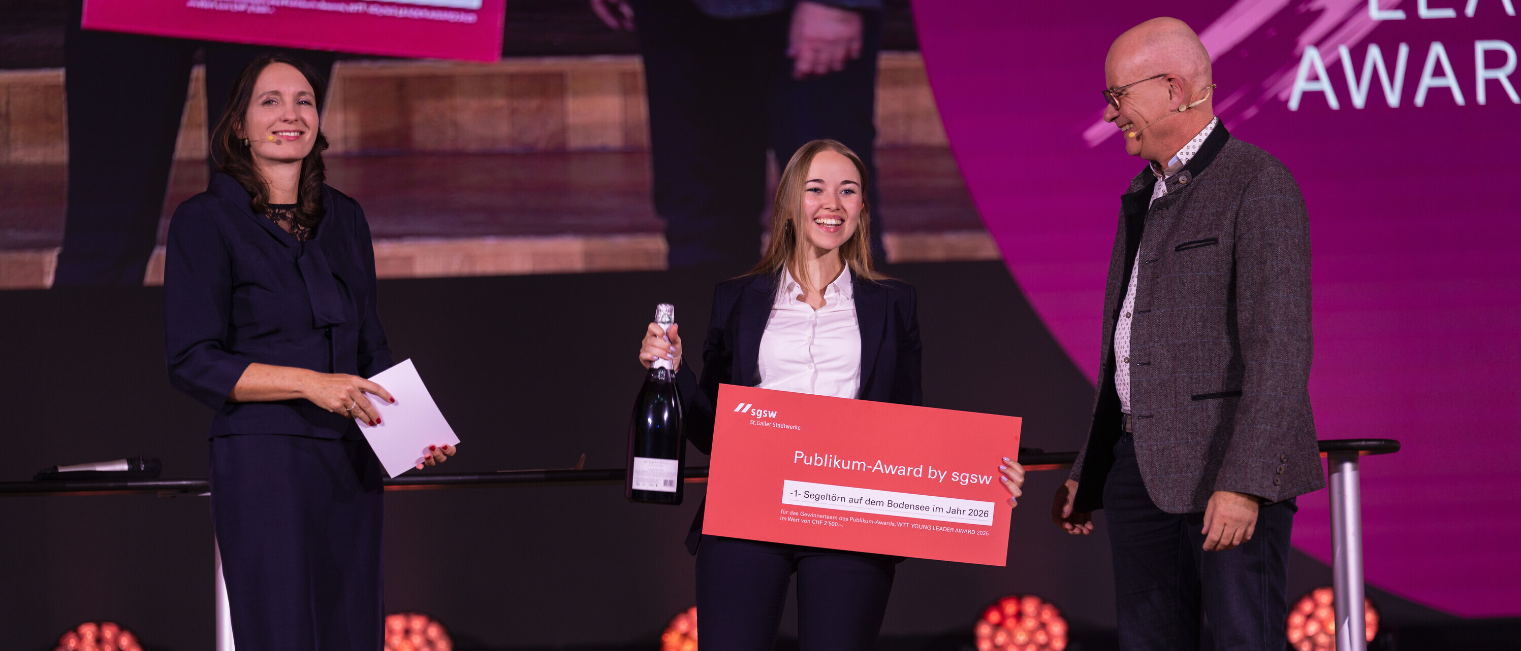 Am 29. Oktober 2025 war es wieder soweit. In der Tonhalle St.Gallen erklangen die berühmten Worte des WTT YOUNG LEADER AWARD: «And the Winner is...». Wir gratulieren den Gewinnern sowie den 2. und 3. rangierten Teams in den jeweiligen Kategorien Marktforschung und Managementkonzeption zu ihren grandiosen Leistungen!