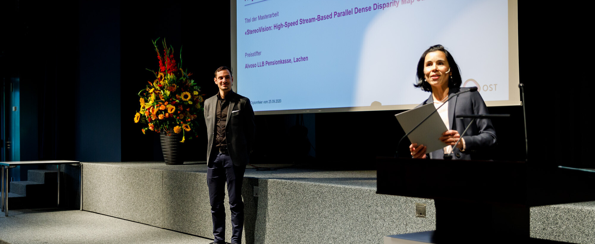 MSE-Absolvent Roy Seitz wurde für seine hervorragende Leistung mit dem Preis für den besten Masterabschluss ausgezeichnet. Während seines Masterstudiums mit der Vertiefung Industrial Technologies erhielt er zudem den Mathematik-Preis der Gesellschaft für Mathematiker an Schweizer Fachhochschule (GMFH) für seine Studienarbeit "Hyperbolische Bildregistrierung".