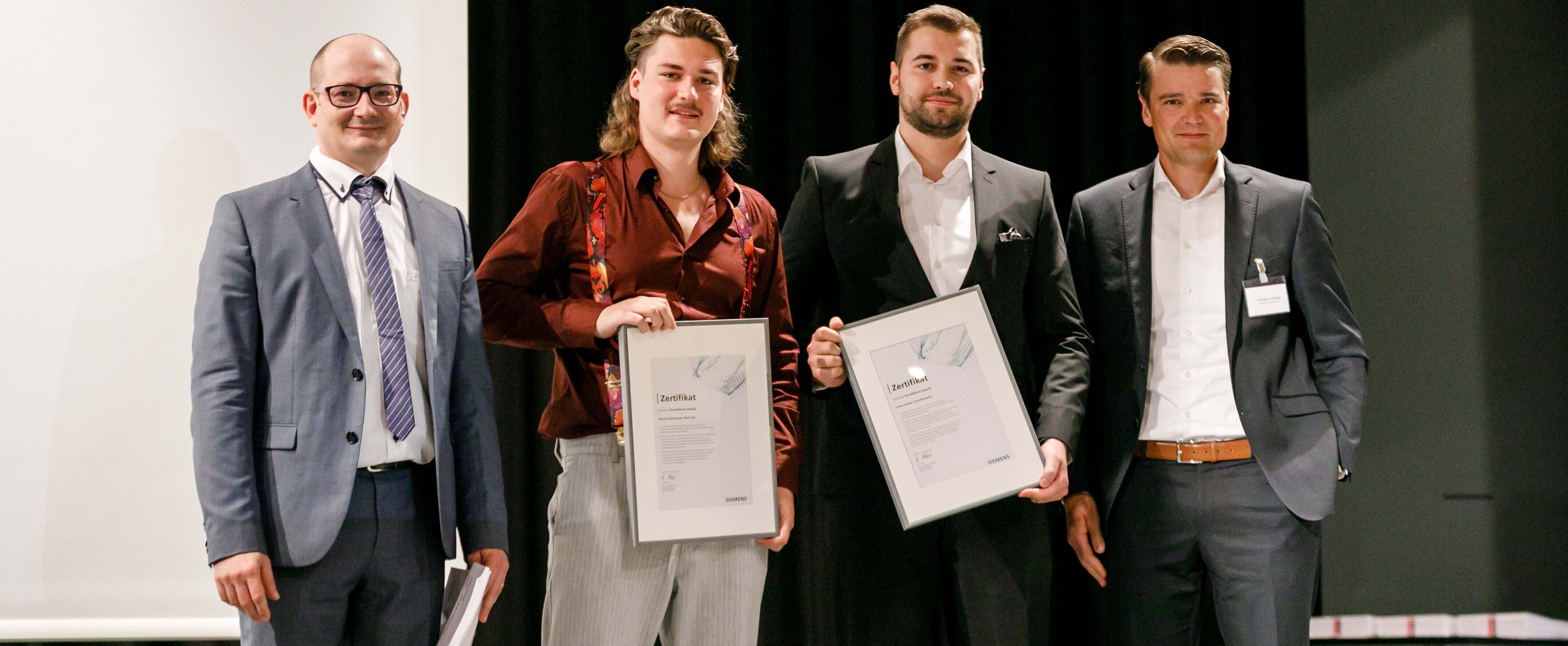 Eine Bachelorarbeit, die nicht nur in der Theorie überzeugt: Die beiden Informatikstudenten Severin Dellsperger und Julian Klaiber gewinnen mit ihrer Arbeit zum Thema «Segment Routing Service Programming» den mit 4 000 Franken dotierten, regionalen Siemens Excellence Award und sind damit für den mit 10 000 Franken dotierten nationalen Siemence Award 2022 nominiert. Im Rahmen ihrer Arbeit entwickelten die beiden eine Applikation, die die Einfügung von Netzwerkdiensten in das Routing von Datenpaketen von einer Quelle zu einem Ziel deutlich vereinfacht.