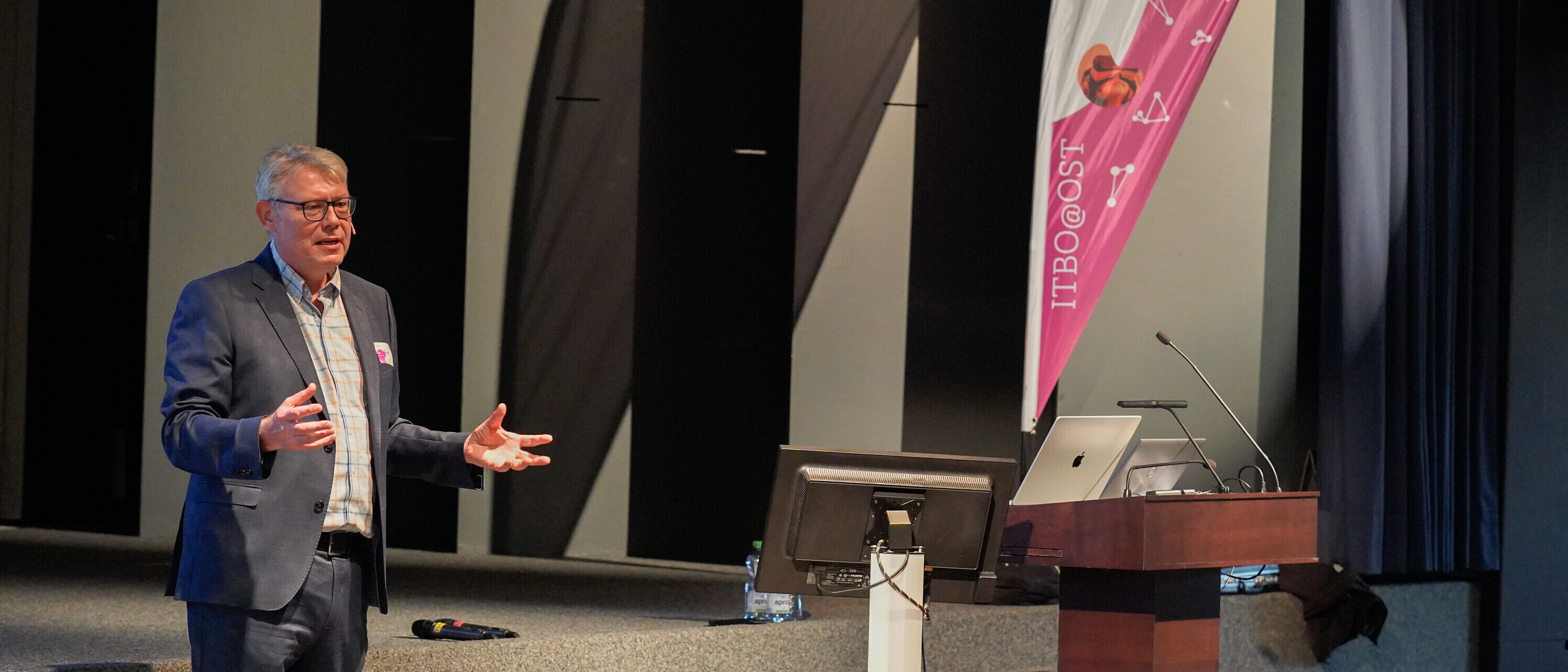 Prof. Dr. Guido Schuster, Direktor des ICAI, führte durch die Tagung, welche Teil der IT-Bildungsoffensive (ITBO) ist, eine Initiative des Kantons St.Gallen.