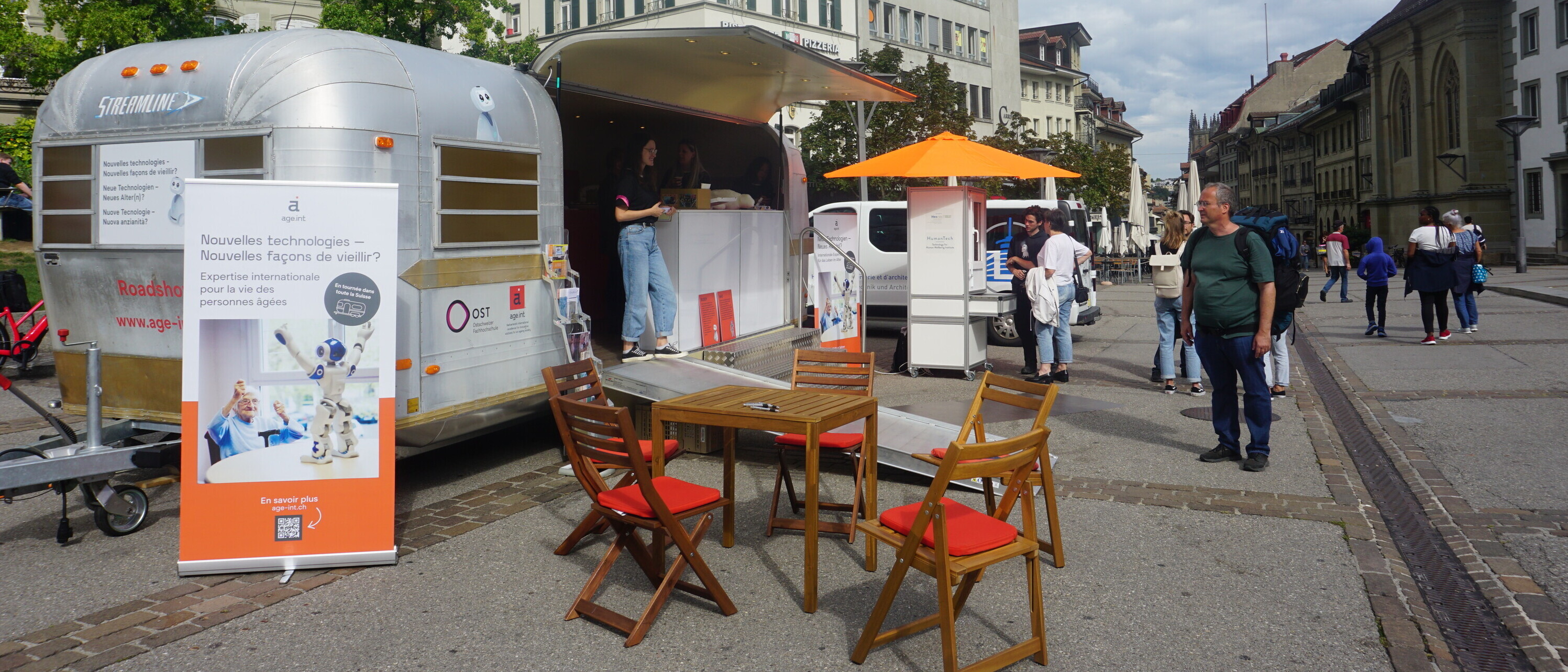 Unterstützende Roboter, Sturzsensoren, Geräte für Vitaldatenmessungen und viele weitere Alterstechnologien reisten vergangene Woche in einem Anhänger durch die Schweiz. Im Rahmen des Forschungsprojekts AGE-INT fand zum zweiten Mal die jährliche Roadshow statt.