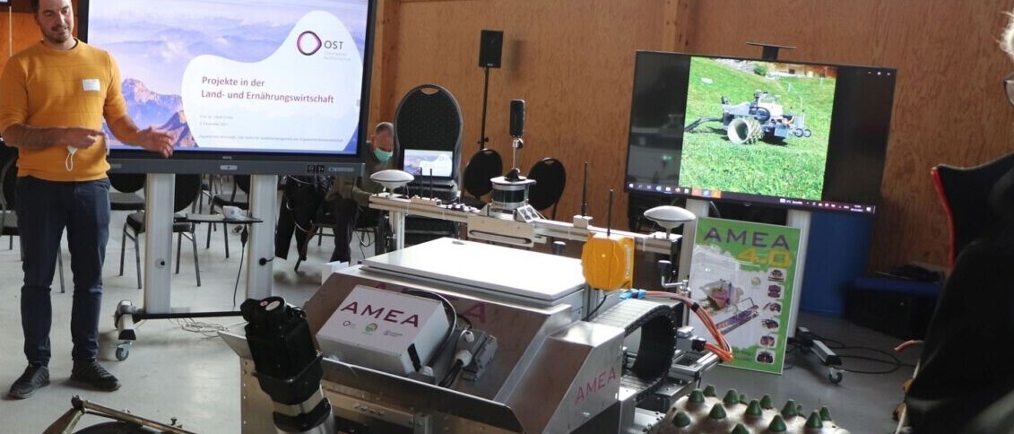 Der Standort Tänikon der vom Bund geführten Forschungsanstalt Agroscope sei gut aufgestellt, sagte Gastgeberin und Standortleiterin Nadja El Benni. Ergänzungen in den Bereichen Sensortechnik, Elektrotechnik, Informatik und Mechatronik könnte die vom Kanton Thurgau mitgetragene OST - Ostschweizer Fachhochschule einbringen. «Wir brauchen die Anwendung», bestätigte Jürgen Prenzler, Leiter des Instituts für Entwicklung Mechatronischer Systeme an der OST. Die Möglichkeiten in Tänikon seien mit der dort angesiedelten Swiss Future Farm ideal. Hier könnten Technologien und Forschungsthemen anwendungsorientiert entwickelt werden. Auch Regierungspräsidentin Monika Knill unterstrich die bedeutende Rolle von Agroscope und der Swiss Future Farm für die digitale und smarte Landwirtschaft.
