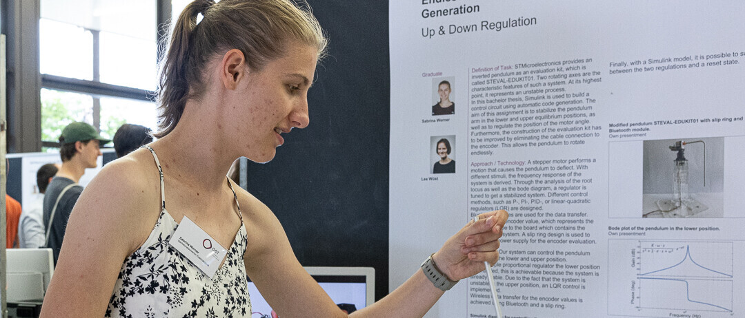 Ein grosser Meilenstein vor dem Abschluss ist geschafft: Die Studierenden des Studiengangs Elektrotechnik haben ihre Bachelorarbeiten abgeschlossen und sie auch dieses Jahr an einer Ausstellung am OST-Campus Rapperswil präsentiert. Familie, Freunde, Projekt- und Industriepartner, Alumni und Dozierende konnten die Arbeiten aus der Nähe bestaunen und mit den Studierenden ins Gespräch kommen.