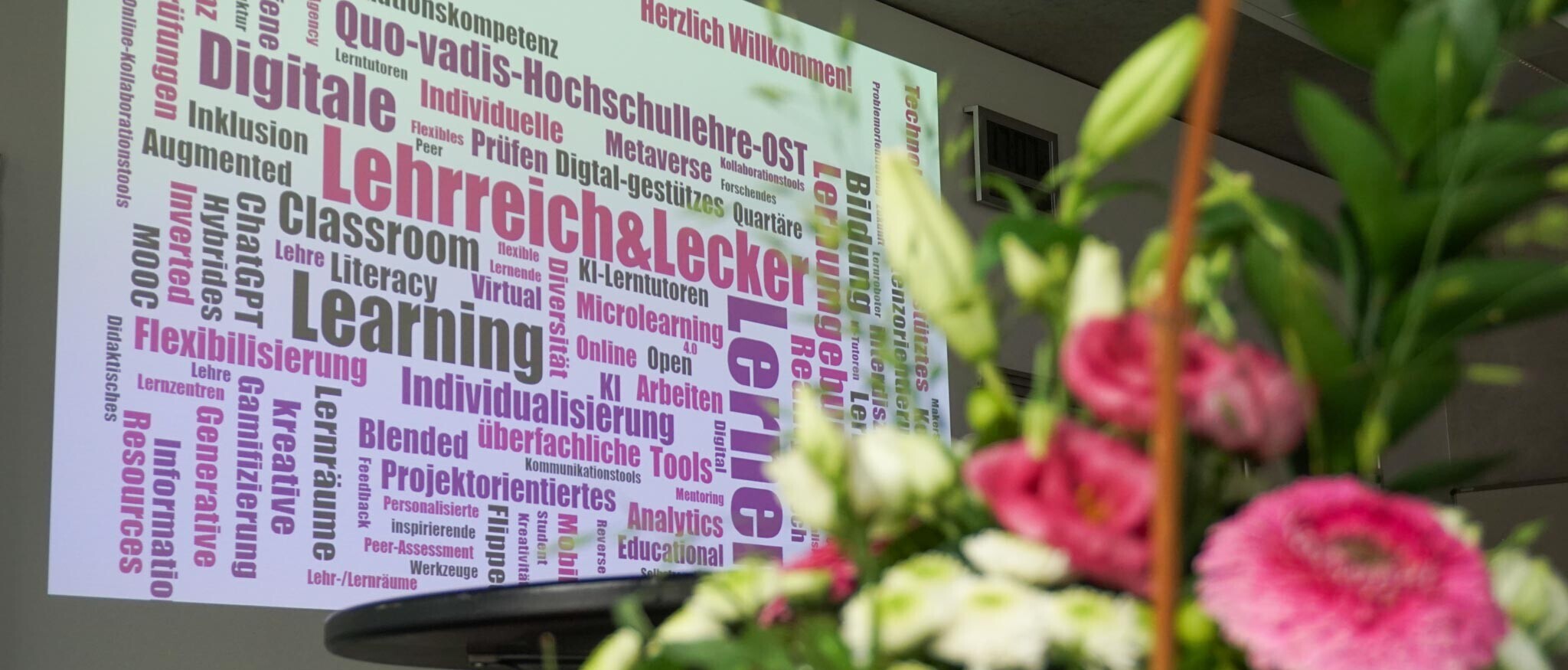 Die Zertifikatsübergabe fand dieses Jahr erstmals im Rahmen der Veranstaltung «Lehrreich und Lecker» des ZHB statt. Im Zentrum der Veranstaltung stand die Frage, wie Hochschullehre im Jahr 2030 aussehen könnte. Dr. Luci Gommers, Lehrbeauftragte für pädagogische Psychologie an der Universität St.Gallen, stellte in ihrem Referat Raumkonzepte für die Hochschullehre der Zukunft vor und Prof. Dr. Frieder Loch, Professor für User-Centered Design am Institut für Interaktive Informatik der OST, gab Einblicke in das Raumkonzept des Studiengangs «Digital Design». In die Zukunft schaute auch das Team des ZHB und diskutierte die Möglichkeiten von Digitalisierung und KI für individualisiertes und adaptives Lernen.