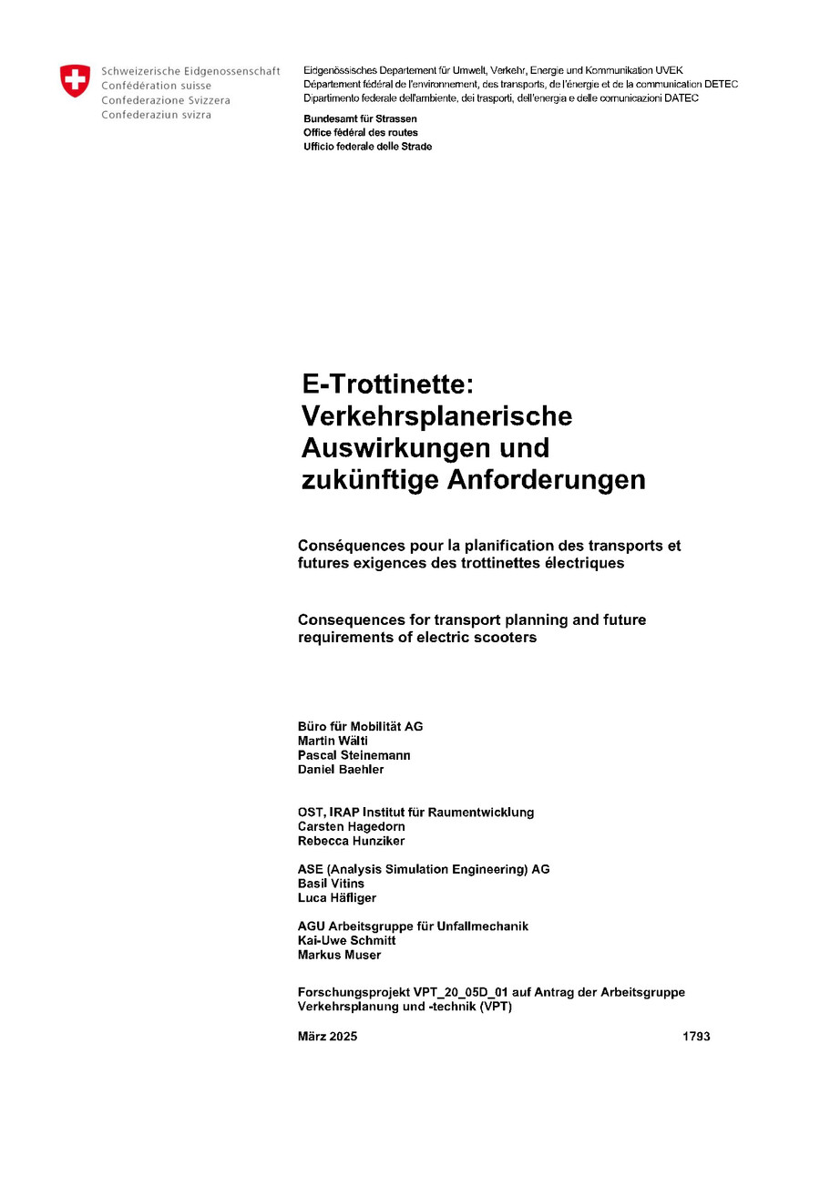 Die Verbreitung von elektrischen Kleinstfahrzeugen, insbesondere von E-Trottinetten, hat in den letzten Jahren zugenommen. Noch ist unklar, welche Rolle E-Trottinette insbesondere im Gesamtmobilitätssystem einnehmen werden. Die zunehmende Präsenz im öffentlichen Raum führt aber vermehrt zu Herausforderungen. So können E-Trottinette aus verschiedenen Gründen als Ärgernis wahrgenommen werden. Probleme sind das «wilde» Abstellen und Konflikte zwischen Zufussgehenden und E-Trottinette-Fahrenden. Eine weitere Herausforderung ist die Nachhaltigkeit von E-Trottinetten, wobei die Faktoren Lebensdauer und Laufleistung eine entscheidende Rolle spielen. Im Rahmen einer Studie untersuchten mehrere Forschungspartner, welche verkehrsplanerischen Auswirkungen E-Trottinette haben und welche zukünftigen Anforderungen sich daraus für die Infrastruktur- und Netzplanung ergeben.