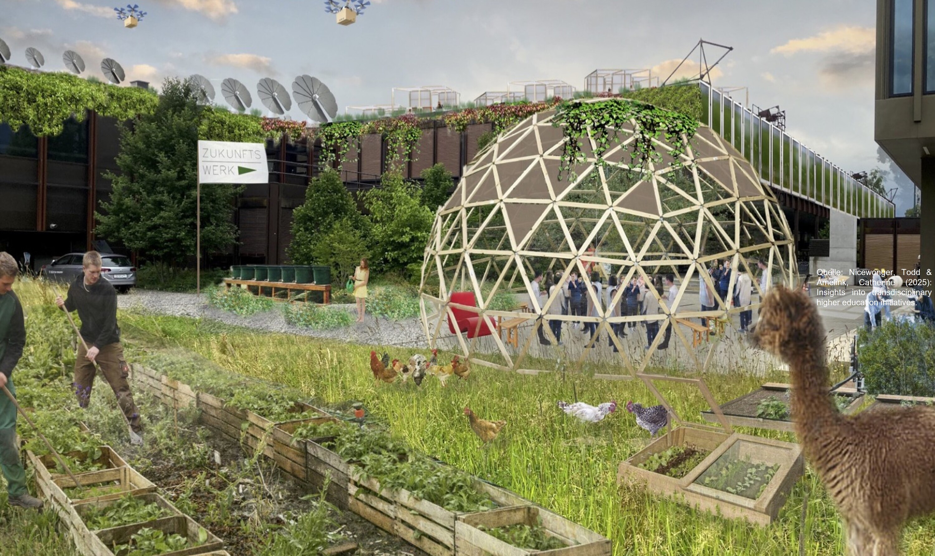 Dazu gehören Sozial- und Altersforschung (FRMO), kollaborative Raum- und Landschaftsplanung (RK), architektonische und experimentelle Ansätze in Reallaboren (SPDO), ökologische und pflanzenbezogene Expertise (ILF) sowie integrative Freiraumgestaltung (BATO).