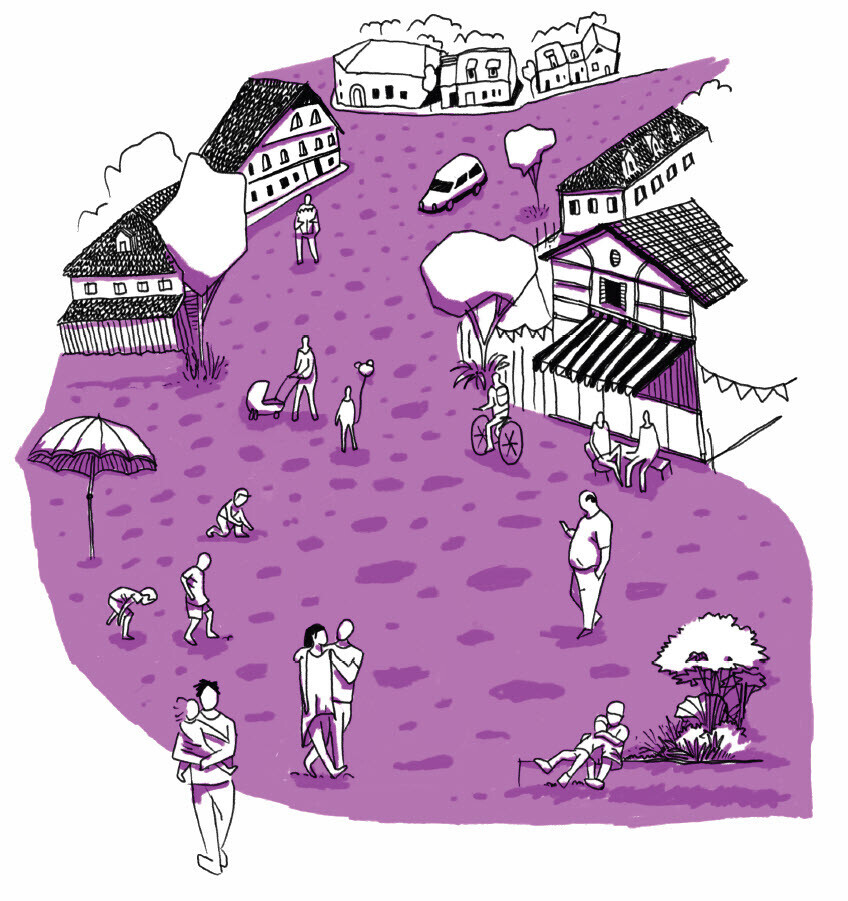 Architektur und Raumplanung bilden den Rahmen. Materialien, Bauformen und die räumliche Anordnung der Gebäude bestimmen die Qualität des Lebensraums. Entscheidend ist die Vernetzung von privaten, öffentlichen und natürlichen Räumen. Dadurch entsteht ein dynamisches Netzwerk, das soziale, ökologische und ökonomische Beziehungen ermöglicht.
