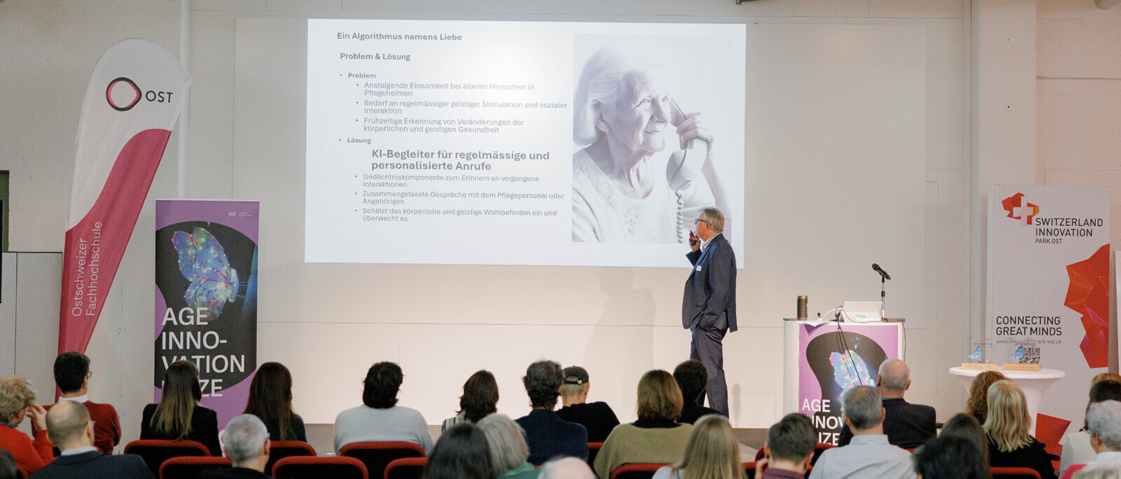 Eine Sitzhilfe für den öffentlichen Verkehr, eine Plattform für den Wiedereinstieg ins Berufsleben nach der Pensionierung und digitale Spiele zur Vorbeugung von kognitiven Beeinträchtigungen werden mit dem diesjährigen Age Innovation Prize ausgezeichnet. Die drei Gewinnerprojekte überzeugten im Hinblick auf eine nachhaltige Verbesserung der Lebenssituation älterer Menschen am meisten. Lanciert wurde der Preis vom IAF Institut für Altersforschung der OST – Ostschweizer Fachhochschule in Zusammenarbeit mit dem Switzerland Innovation Park Ost und dem Wirtschaftsprüfungs- und Beratungsunternehmen EY in der Schweiz.