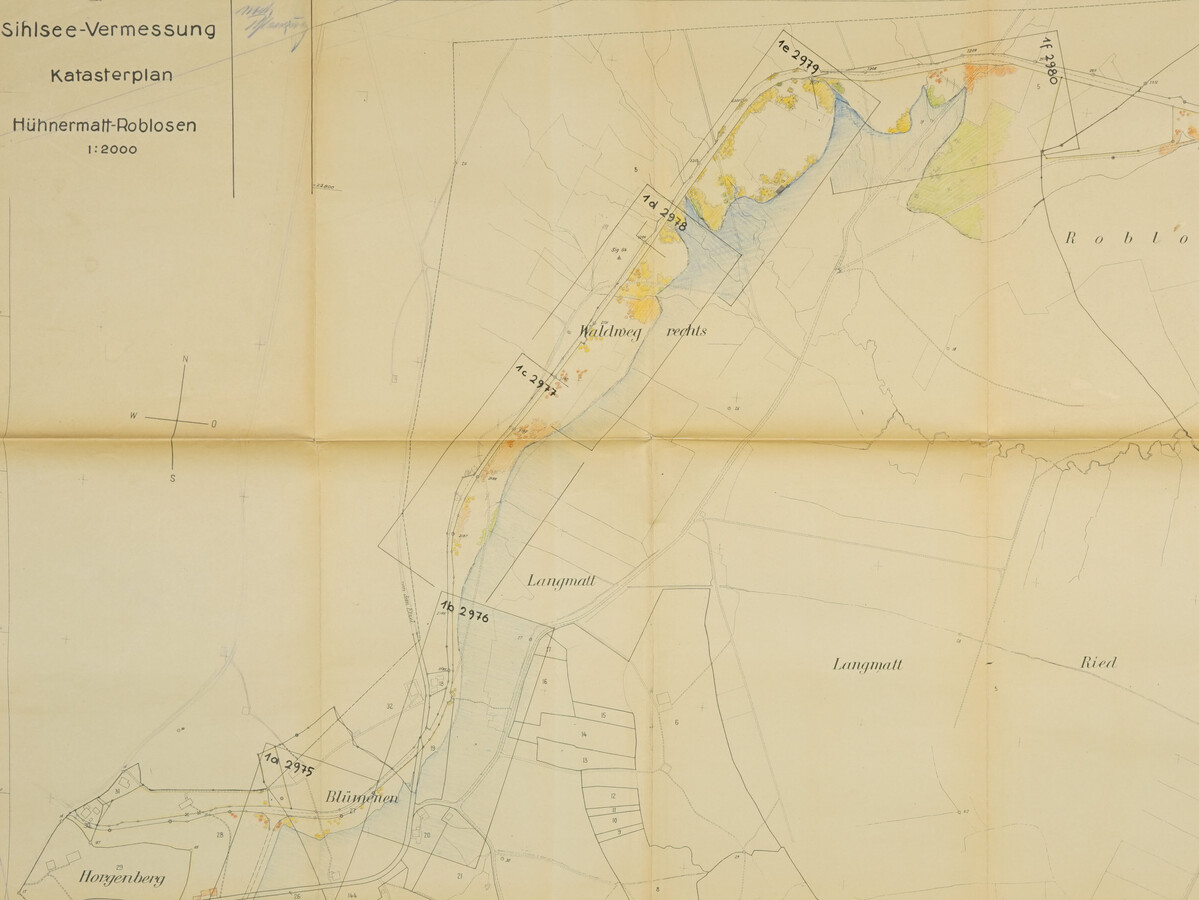 Eine Übung in diesem Modul besteht darin, historische Pläne aus dem ASLA zu georeferenzieren. Dafür werden markante Punkte in der Landschaft (Kreuzungen, Ecken von Hausdächern, etc.) auf einer bereits bestehenden Karte/Orthofoto bestimmt. Danach werden die gleichen Punkte auf den historischen Plänen gesucht. Es werden mindestens drei Referenzpunkte benötigt, damit durch Berechnung ein entzerrtes Bild erstellt werden kann. Dank der Georeferenzierung auf das gleiche Bezugssystem können die Datenbestände aus verschiedenen Zeiten überlagert und direkt miteinander verglichen werden. Nebst dem Vergleichen unterschiedlicher Zeitstände wird auch das genaue Zusammenfügen von einzelnen Planausschnitten bei Grossprojekten wie beispielsweise der Uferbepflanzung des Sihlsees ermöglicht.