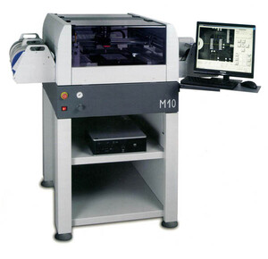 Beim M10V Pick and Place-System handelt es sich um einen flexiblen Bestückungsautomaten zur Platzierung von SMD-Bauteilen mit Kantenlängen von 0201 bis 40 x 40 mm. Die Bestückung selbst erfolgt hierbei immer mit einem Vakuum-Sauger, der die Bauteile über ein Vision-System explizit vermisst und anschliessend hochpräzise platziert. Bei der Maschine handelt es sich um eine ausgereifte, hochwertige und stabile Konstruktion. Die einfache Programmierung und das ausgezeichnete Preis-Leistungsverhältnis machen die M10V perfekt für kleine Produktionslinien und den Prototypenbau. Die Bestückungsanlage M10V verbindet mechanische Genauigkeit mit höchster Qualität. Die leicht zu bedienende und flexible Programmier-Software ermöglicht höchste Flexibilität bei hoher Produktivität. Schnelle Rüstzeiten und geringster Wartungsbedarf tragen maßgeblich zur Senkung der Gesamtbetriebskosten bei und sorgen so für eine schnelle Amortisation der Investition. Einzigartige Merkmale der M10V sind die Abholung großer Bauteile auch aus undefinierten Tray´s und die Verarbeitung von Schüttgut (Vogelfutter). Das intelligente Kopf-Vision-System ermöglicht diese Komponenten zu finden, abzuholen, mit Hilfe des Vakuum-Saugers auszurichten und über das Tisch-Vision-System präzise zu platzieren. Die gesamte nutzbare Fläche kann mit PCB´s oder frei definierbaren Zuführungen bestückt werden. Die automatischen Feeder-Kassetten sind intelligent und werden von außen mit wenigen Handgriffen angebracht. Die M10V kann alternativ mit einem Zeit-Druck gesteuerten Dispenser für Lotpaste und SMD-Kleber ausgestattet werden.