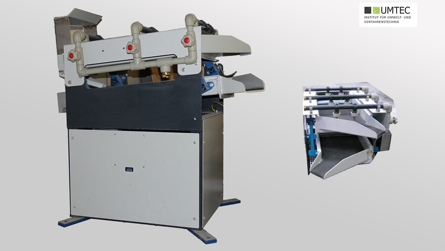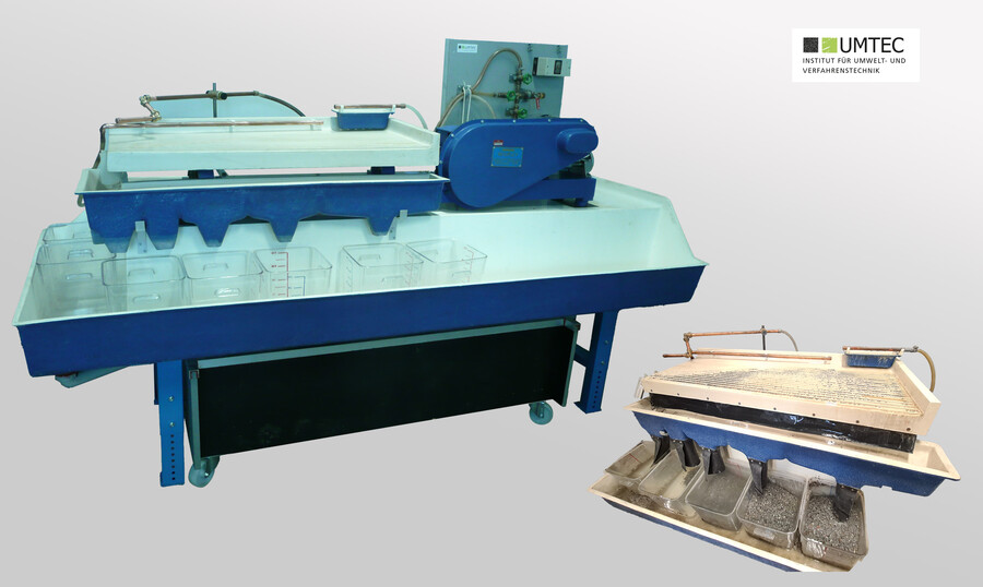- Verschiedene Dichte-Trennschnitte möglich durch Einstellung der Schwingungsfrequenz/Neigung des Tisches