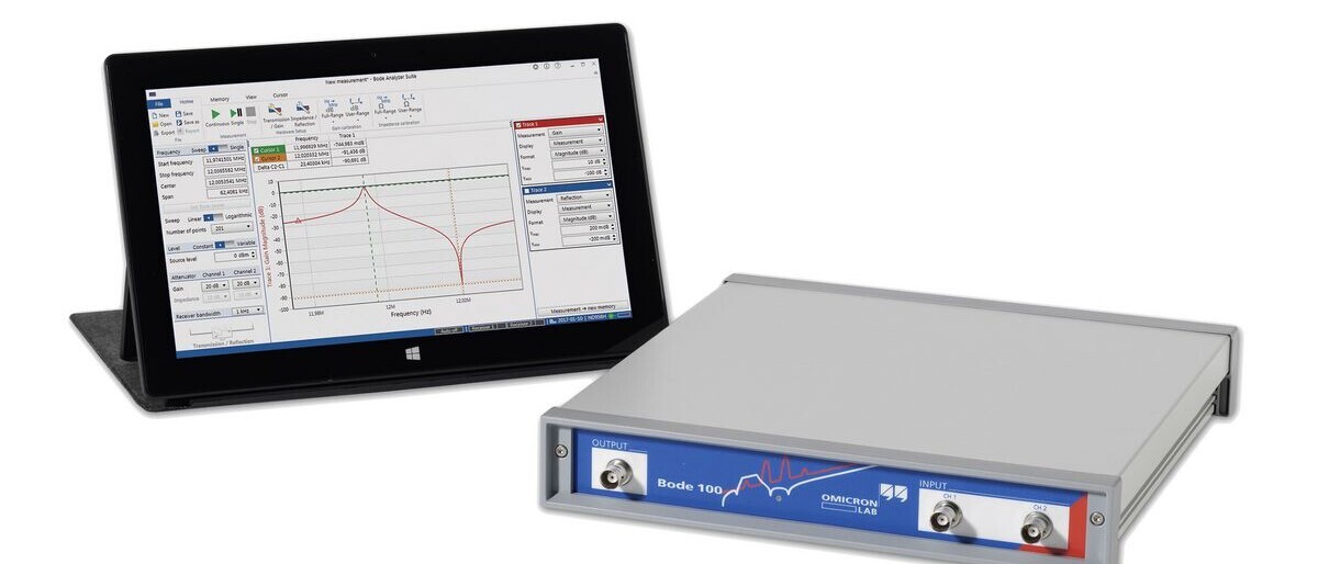 Für die Charakterisierung von Komponenten und Netzwerken stehen mehrere Geräte zur Verfügung. Das Bode100 von Omicron Lab ermöglicht zusätzlich die direkte Bestimmung von Übertragungsfunktionen von Schaltungen und die Analyse von Regelkreisen.