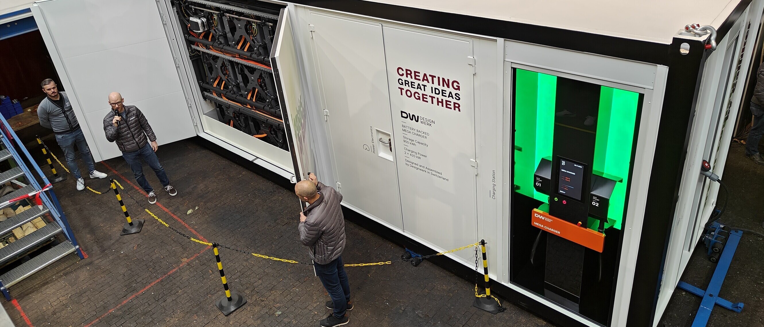 Batteriegepufferter Ladecontainer soll Nutzfahrzeuge langstreckentauglich machen und Stromnetze entlasten