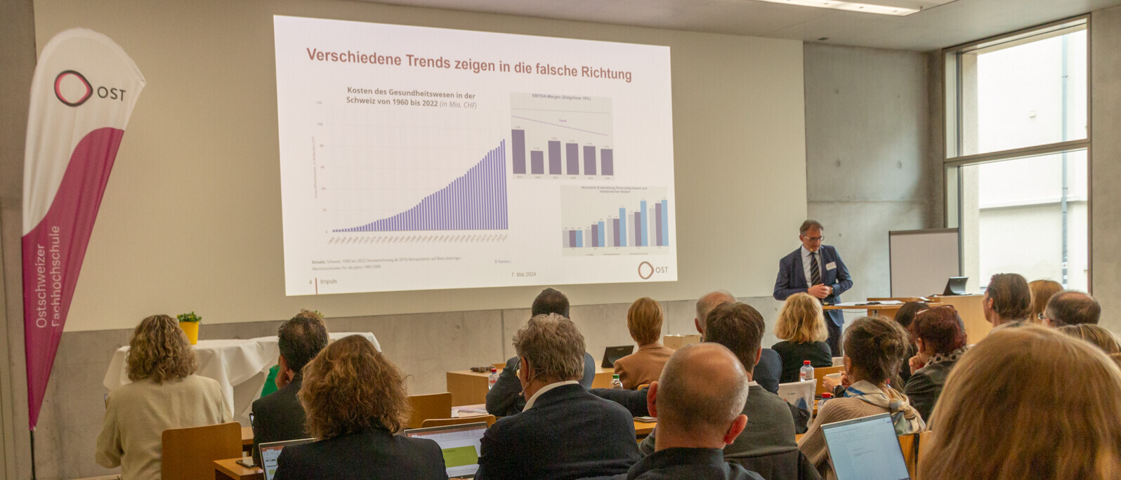 Am OST Campus Rapperswil findet am 12. Mai 2026 die Gesundheitstagung Schweiz statt – ein Entscheider:innen-Forum zur finanziellen Steuerung und Resilienz im Gesundheitswesen, ausgerichtet durch den ICV Branchenarbeitskreis Gesundheit in Kooperation mit dem IFL Institut für Finance und Law.