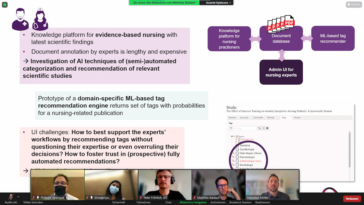 Um diesen Fragen nachzugehen, organisierte IPM-Professor Matthias Baldauf mit internationalen Kolleginnen und Kollegen den Workshop «Engaging with Automation» im Rahmen der diesjährigen «Conference on Human Factors in Computing Systems». In einem hybriden Format präsentierten und diskutierten 23 Teilnehmende am Konferenzort New Orleans sowie online zugeschaltet ihre aktuellen Forschungsarbeiten zum Thema. Unter anderem stellte Sebastian Müller den aktuellen Stand eines AI-Showcase-Projekts in Kooperation mit dem Institut für Pflegewissenschaften vor.