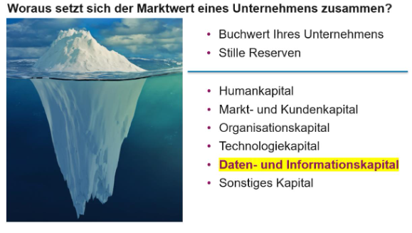 Wie bei einem Eisberg liegt der wahre Wert von Daten oft unter der Oberfläche. Was sichtbar ist – etwa die direkt genutzten Daten in operativen Systemen – bildet nur die Spitze. Der weitaus grössere Teil des Potenzials bleibt verborgen, solange Unternehmen keine Transparenz über ihre Datenbestände schaffen. Gerade weil es sich bei Daten um immaterielle Güter handelt, ist ihre systematische Erfassung und Bewertung entscheidend, um ihren strategischen Nutzen zu erschliessen.