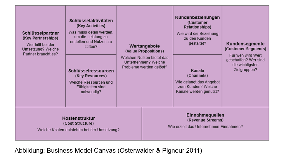 Osterwalder, A., & Pigneur, Y. (2011). Business Model Generation: Ein Handbuch für Visionäre, Spielveränderer und Herausforderer. Campus Verlag.