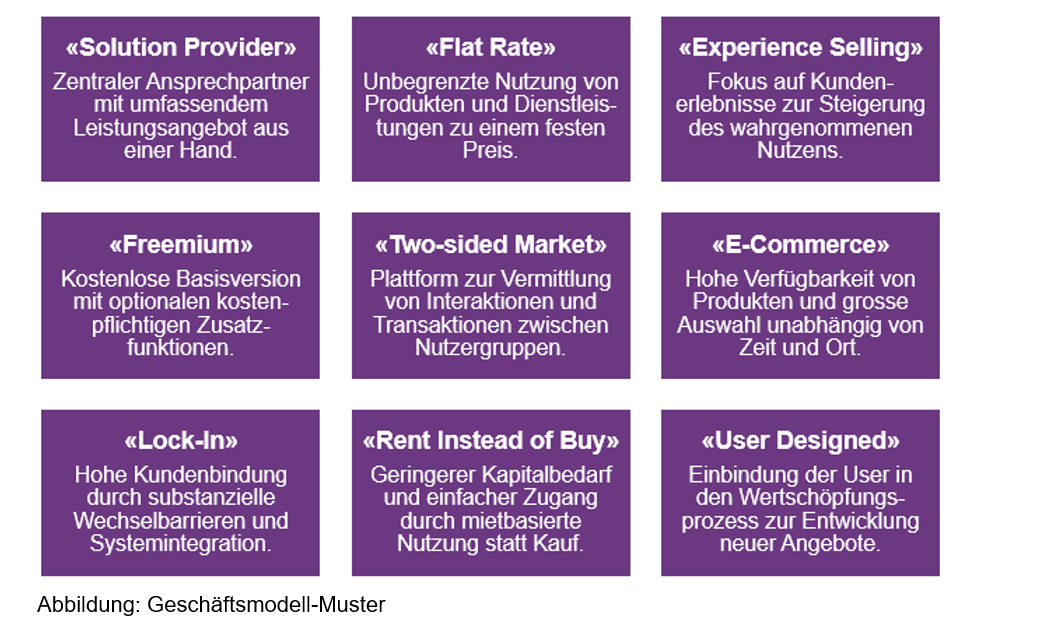 Geschäftsmodell-Muster bezeichnen bewährte Strukturprinzipien, die in unterschiedlichen Branchen erfolgreich eingesetzt werden – oft angepasst an den jeweiligen Kontext und die spezifischen Kundenbedürfnisse. Sie dienen als wertvolle Orientierungshilfe und Inspirationsquelle bei der Entwicklung, Analyse und Weiterentwicklung von Geschäftsmodellen. Durch die systematische Nutzung solcher Muster können Unternehmen Innovationspotenziale erschliessen und neue strategische Stossrichtungen für die Weiterentwicklung des eigenen Geschäftsmodells entwickeln.