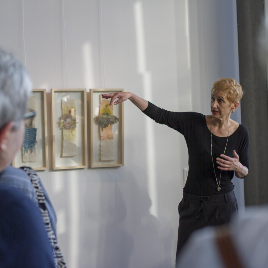 Die gelernten Handarbeitslehrerinnen lassen sich von vorhandenen Materialien, auch Restposten, inspirieren. Ruth Ingold-Wöhrle ist stark fasziniert von Strukturen. In ihren Arbeiten bestimmt die Struktur das Bild. Dies erstreckt sich von der Struktur eines Gewebes bis hin zu eigens geschaffenen Stoffen aus kleinen Stoffteilen. Nancy van Dijk verändert die Struktur, die Kette oder den Einschlag, von bestehenden Stoffen und so entstehen eigenwillige, freie Bilder der Natur.