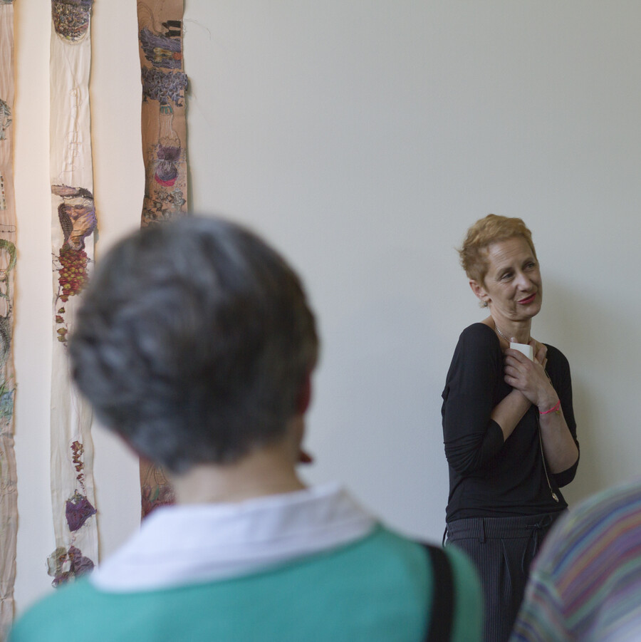 Das Tapisserie-Weben ist eine jahrhundertealte Technik. In einer langsamen und ruhigen Arbeitsweise am Hochwebstuhl wachsen die Bilder nur langsam, Zeile um Zeile, von einer Bildkante zur gegenüberliegenden. Die Technik erlaubt keinerlei nachträgliche Korrekturen, jede neu gewebte Fläche oder Farbnuance muss im Hinblick auf das fertige Bild gewichtet und beurteilt werden, lange bevor dieses als Ganzes sichtbar ist. Jede noch so kleine Entscheidung muss bereits gewebte Bildelemente ausbalancieren und gleichzeitig eine ausgewogene Basis schaffen für die noch ungewebten Bereiche des Bildes.