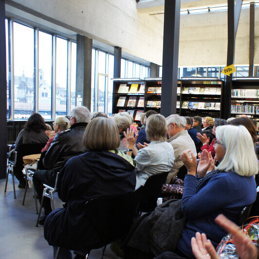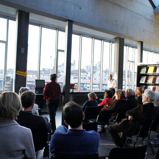 In der Galerie Textilaltro sprach und las Stefan Kammhuber, Professor für Kommunikation an der HSR, die Texte von Neruda. Er wurde musikalisch begleitet von Eduardo Verdugo, der die Verse Nerudas mit Liedern aus Chile und Spanien untermalte.
