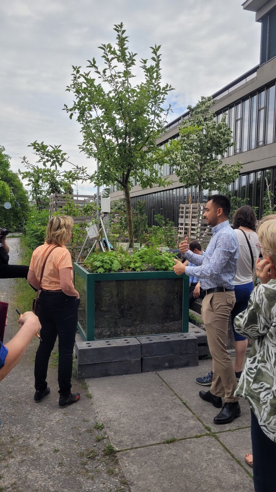 Die transparente und transportable Baumrigole namens «Cool Green» dient als Living Lab und gleichzeitig als Exponat für Lehre und Forschung. Ähnlich einem grossformatigen Blumentopf ist die Baumrigole für den Einsatz in Schwammstadtkonzepten konzipiert, um die Funktionsweise durch transparente Wände anschaulich zu machen. Mit integrierter Forschungsausstattung ermöglicht sie relevante Studien, insbesondere zur verbesserten Erforschung des Wasserhaushalts.