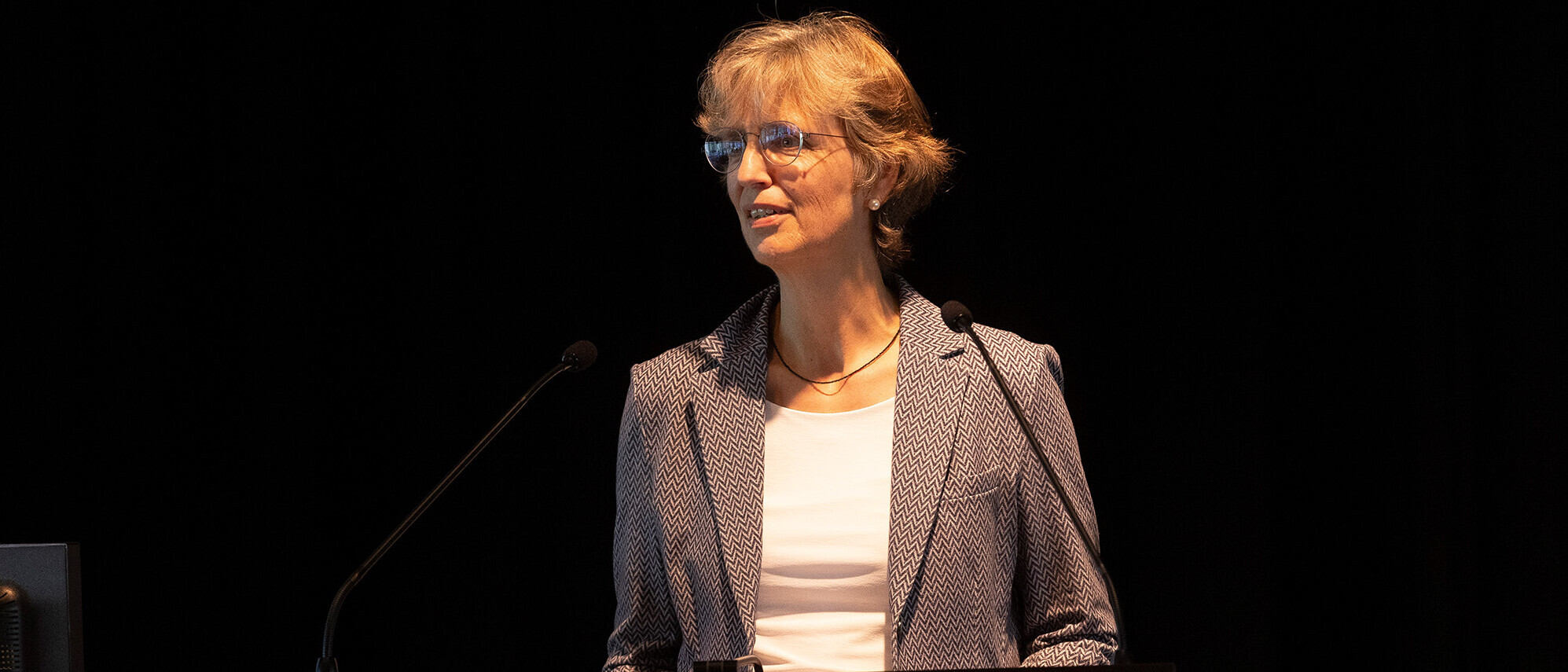 In ihrem Grusswort brachte die Departementsleiterin Margit Mönnecke den Charakter ihrer eigenen Disziplin zum Ausdruck: Landschaftsarchitektur ist verknüpft mit gesellschaftlichen Herausforderungen. Zu den Herausforderungen der Gründungszeit gehörten das Wachstum der Städte, die Erschliessung von Baugebieten und der Verlust von Kulturlandschaften. Diese Herausforderungen haben sich mit der Klimakrise, der Zersiedelung und dem Verlust von Biodiversität heute noch verstärkt. Landschaftsarchitektinnen und -architekten werden mehr denn je gebraucht.