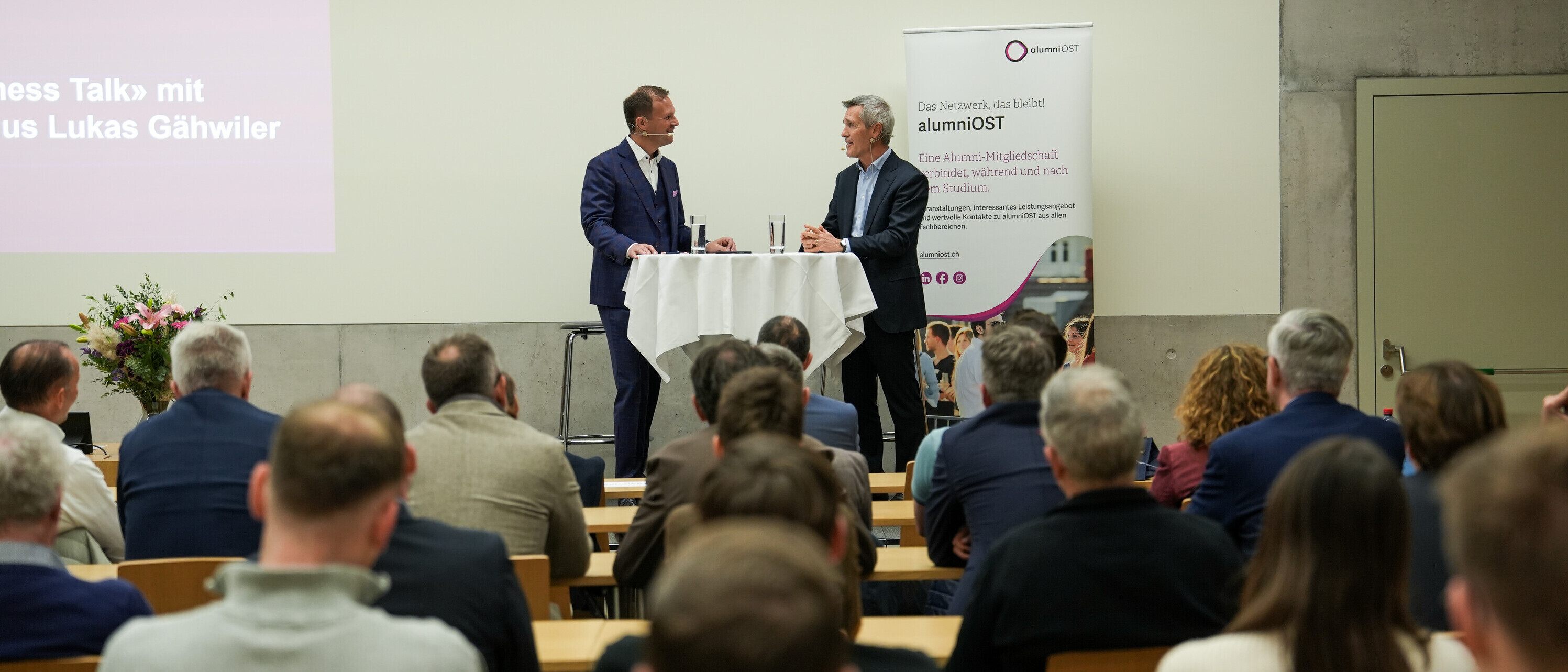 Der Einladung zum Business Talk der alumniOST folgten zahlreiche junge Studierende des Departements Wirtschaft. Ihnen gab Lukas Gähwiler mit, dass sie wissen müssen, wer sie sind und wo sie hinwollen – und dementsprechend ihre Kontakte knüpfen sollten. «Schaut, was euch interessiert, habt den Mut, etwas auszuprobieren und den Job zu wechseln, wenn es nicht der richtige ist», appellierte er an die jungen OST-Studierenden.