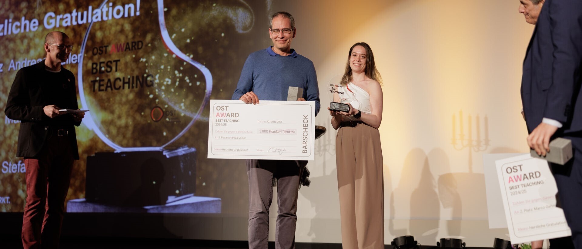 Für den «Best Teaching Award» haben Studierende und Weiterbildungsteilnehmende der OST – Ostschweizer Fachhochschule 289 Lehrpersonen nominiert. 17 davon haben es nach quantitativer Auswertung durch das Awards Office auf die Shortlist 2024/25 geschafft. Sie bildete die Grundlage für die Wahl der Gewinnerinnen und Gewinner durch die Fachjury. Am 20. März 2025 wurden die Preisträgerinnen und Preisträger in festlichem Ambiente ausgezeichnet.