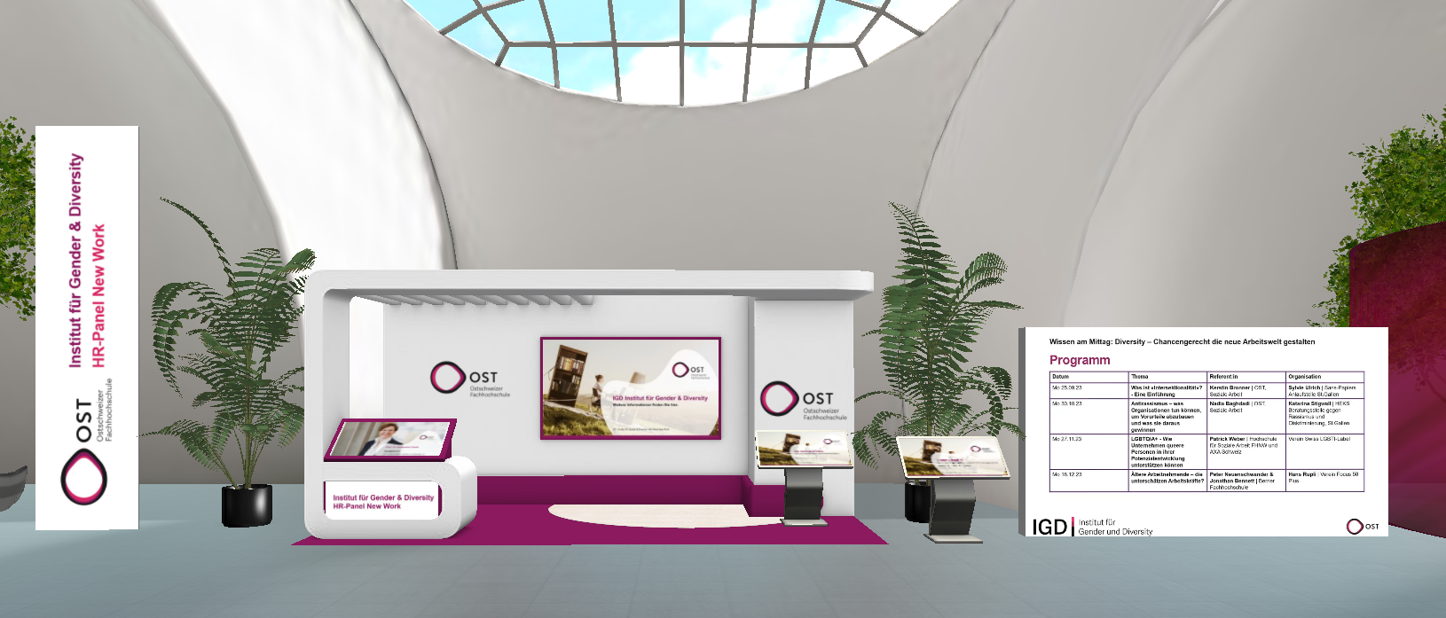 Zum Auftakt der Veranstaltungsreihe «Wissen am Mittag: Diversity – Chancengerecht die neue Arbeitswelt gestalten» des IGD Instituts für Gender und Diversity der OST – Ostschweizer Fachhochschule gab Alexandra Cloots, Leiterin des IGD eine Einführung in das Themenfeld Diversity. Insbesondere ging sie darauf ein, wie Diversity-Management alle Bereiche einer Organisation betrifft und wie wichtig es ist, nachhaltig eine wertschätzende Unternehmenskultur zu etablieren. Sie führte aus, dass das Thema Diversity essenziel für Arbeitgebende ist, da immer mehr Berufstätige betonen, dass die Haltung des Unternehmens gegenüber Diversity für sie eine wichtige Rolle spielt.