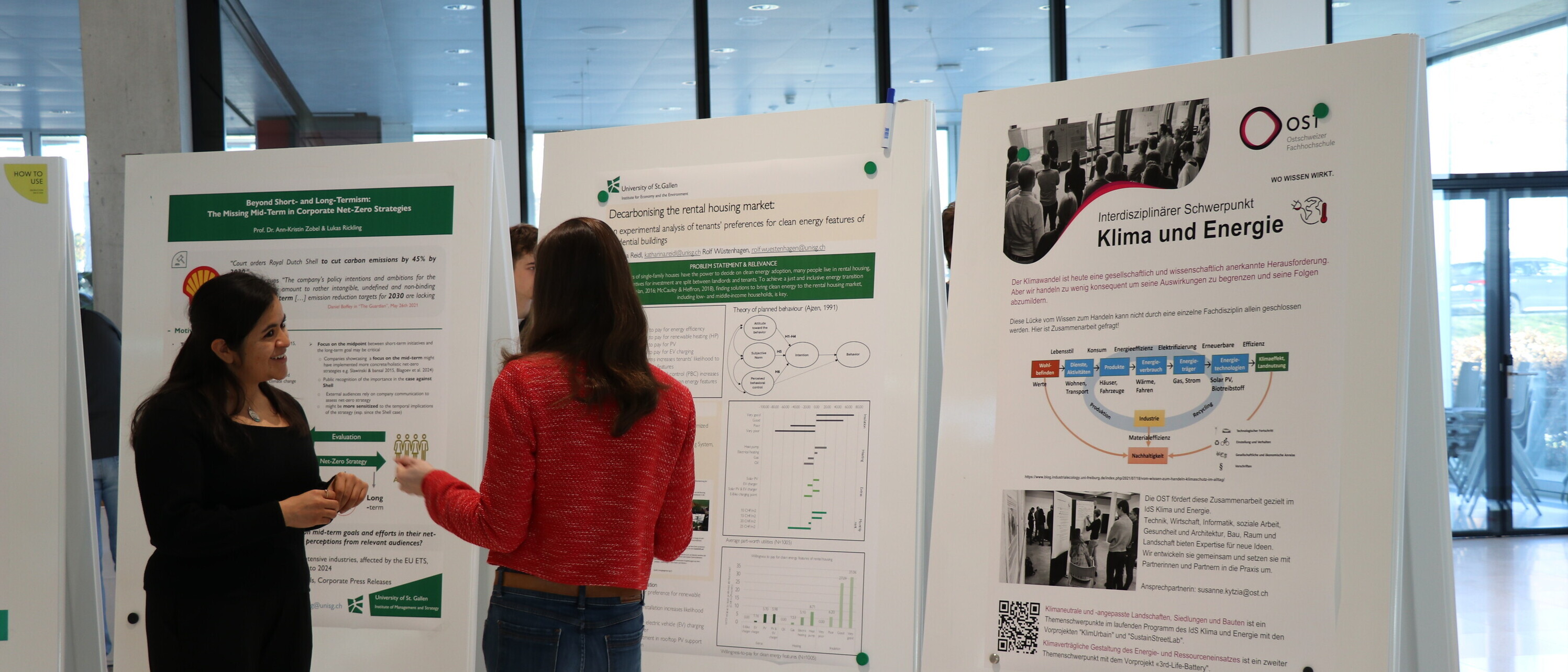 Insgesamt wurden 40 Forschungsprojekte der OST und der HSG präsentiert. Die Projekte decken ein breites Themenspektrum von Energie und Klima über Nachhaltigkeitsdatenmanagement, Innenentwicklung, Politikgestaltung, Zusammenarbeit für den Wandel, Strategie und Führung, Kreislaufwirtschaft, nachhaltige Fertigung, Vielfalt, Gleichstellung und Inklusion bis hin zu psychischer Gesundheit ab. Alle Poster sind bis zum 14. März öffentlich im SQUARE an der Universität St.Gallen ausgestellt.