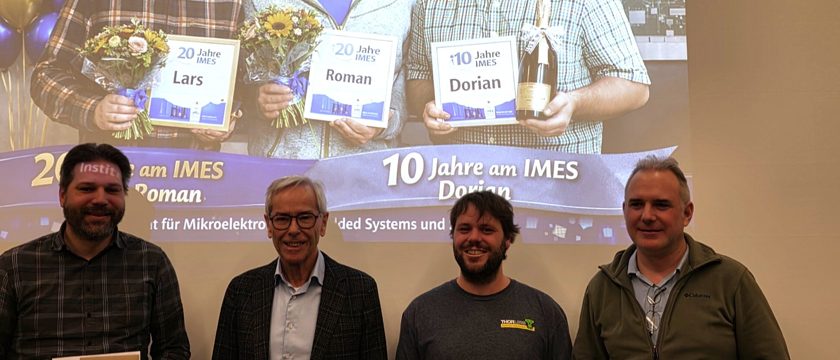 Da Roman und Lars noch unter dem ehemaligen Institutsleiters Prof. Werner Hinn angestellt wurden, überreichte dieser im Rahmen einer kleinen Feier den Jubilaren eine wohlverdiente Anerkennung.