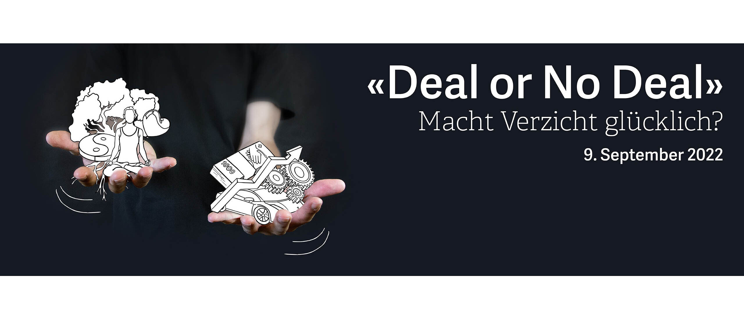 4 Inputs, 2 Break-Out Sessions, 1 Talkrunde! Am Freitagnachmittag, 9. September, fragen wir uns: «Deal or No Deal» Macht Verzicht glücklich? Zusammen mit unseren Expertinnen und Experten aus verschiedenen Bereichen wollen wir herausfinden, wie wir die Balance zwischen Karriere, Wertschöpfung, Konsum, Erholung und Freizeit finden. Wie können wir bewusste Entscheidungen treffen, damit wir im Gleichgewicht bleiben?