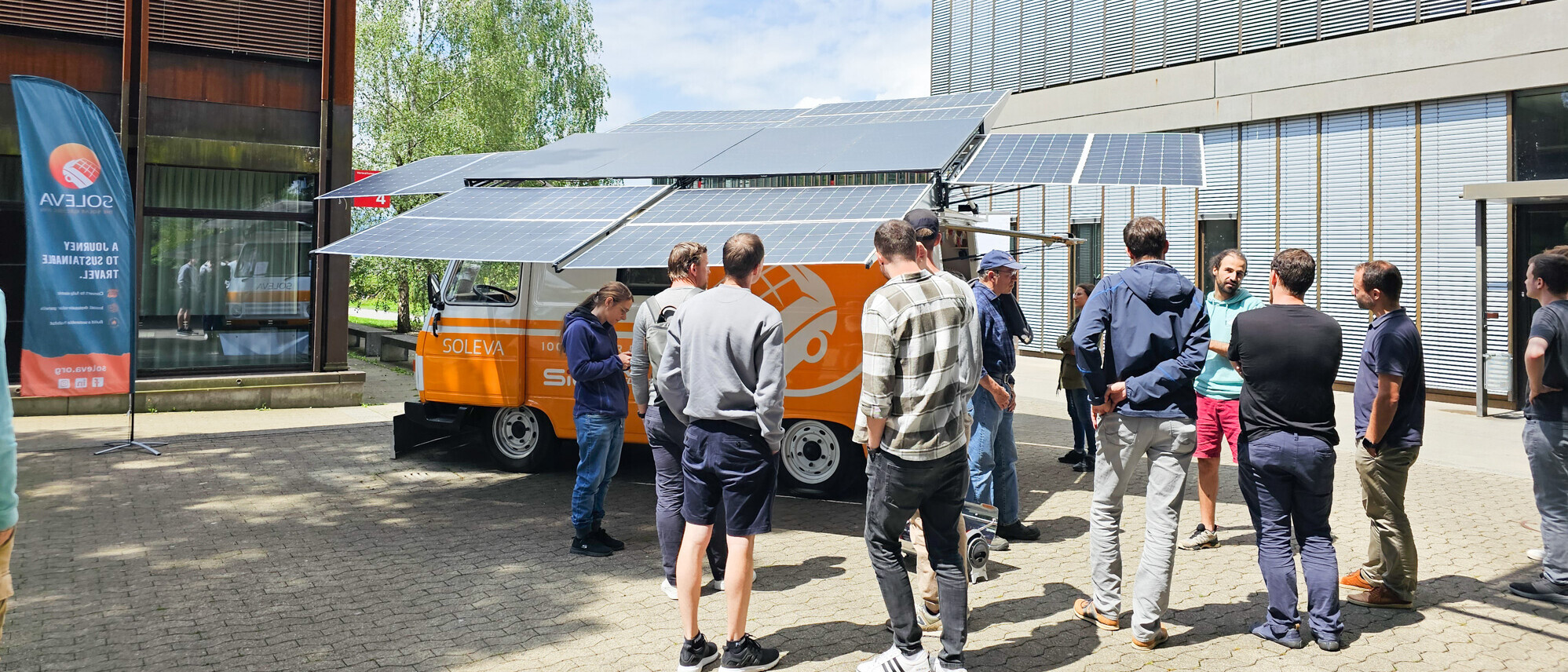 Das Team war bei seinem Besuch an der OST auf Schweiz-Tour und machte an verschiedenen Stationen Halt, um den zu 100 Prozent solarbetriebenen Campervan und die etwas andere Art zu reisen vorzustellen. «Es geht darum, das Potenzial von erneuerbaren Energien aufzuzeigen», sagt Matthieu.