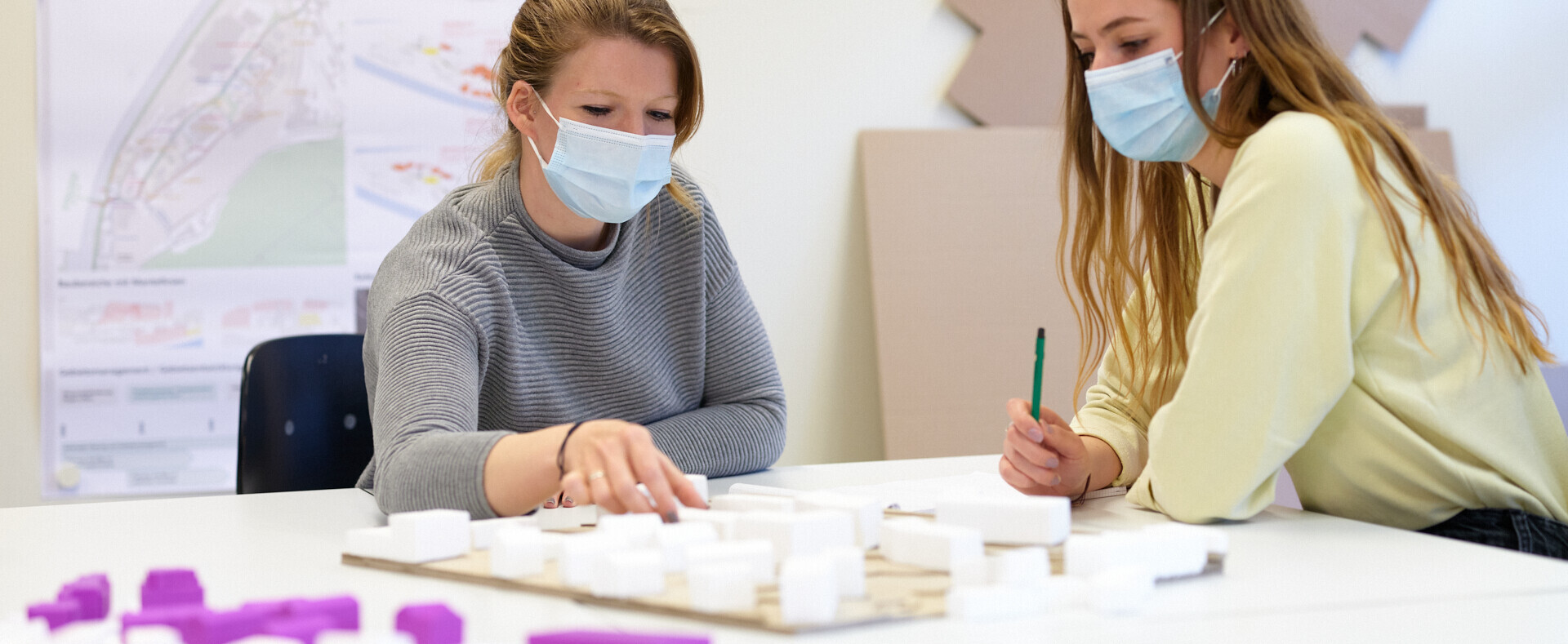 Wo immer mit den Massnahmen um die Pandemie vereinbar bietet die OST Praxisunterricht an, denn «manche Fertigkeiten und Kompetenzen lassen sich nicht via Bildschirm erlangen», so Dirk Engelke, Studiengangleiter Stadt-, Verkehrs und Raumplanung. «Das Bauen und Diskutieren von städtebaulichen Situationen findet zum Beispiel in kleinen Gruppen in Präsenz statt. Die haptische Arbeit am Modell ist nicht nur notwendiger Bestandteil beim Erlernen eines städtebaulichen Grundverständnisses – sie ist in Zeiten des Fernunterrichts auch ein willkommener Gegenpart zum Bildschirm», so Engelke.