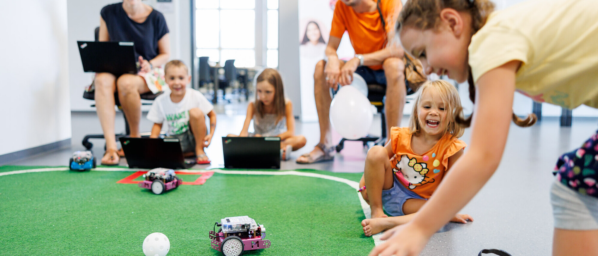 Zudem konnten Arbeiten von Studierende entdeckt werden. Im Foyer tauchten vor allem jugendliche Besucherinnen und Besucher mit VR-Brillen in die von Systemtechnik-Studierenden selbst entwickelten virtuellen Welten ein. In einem anderen Raum haben Studierende die Roboter gezeigt, die sie im ersten Studienjahr gebaut haben – die perfekte Inspiration für den Workshop «Roboter programmieren». Besonders beliebt war auch die Veranstaltung, bei der Kinder eine Wunderblume mit LEDs basteln konnten. Die Blumen wurden stolz mit nach Hause genommen.