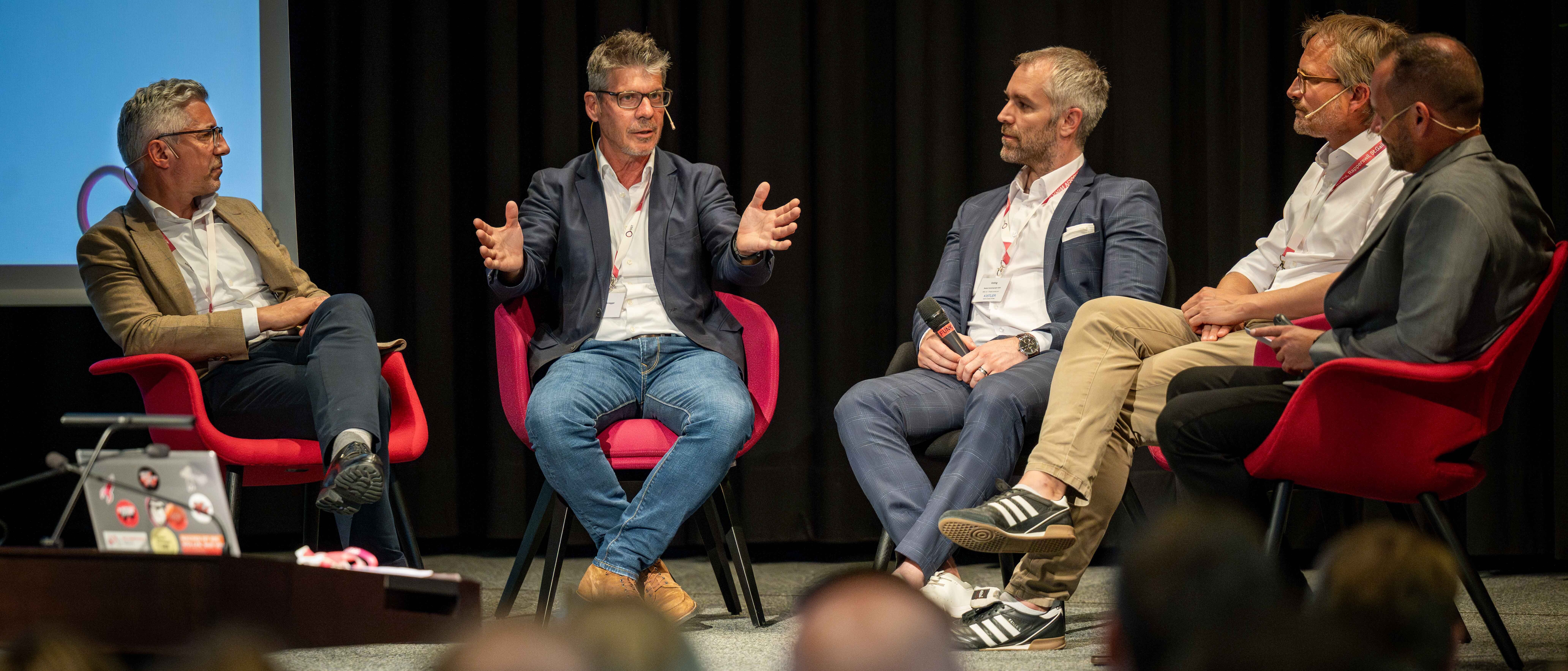 In einer Podiumsdiskussion betonten Vertreter aus Industrie und Wirtschaft den Mehrwert der Zusammenarbeit mit der OST. Romeo Arpagaus, Co-Founder der Studyond AG, hob die neue Denkweise und Tool-Kompetenz hervor, welche die neue Studierendengeneration der AI-Natives mitbringt. Philippe König, Head of Business Development bei der Arbonia AG, hat selbst ein Industrieprojekt begleitet. Die dort erarbeitete Lösung sei seit dem Go-Live erfolgreich im Einsatz. Markus Bänziger, Direktor der Industrie- und Handelskammer St.Gallen-Appenzell, unterstrich: «Die Studierenden der OST befruchten etablierte Teams mit aktuellem Fachwissen, frischen Perspektiven und anders gedachten Lösungsansätzen.»