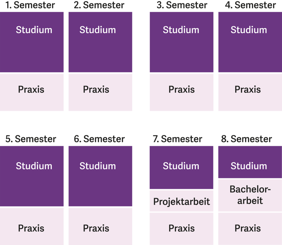 Im PiBS wird parallel zum Studium wertvolle Berufserfahrung gesammelt. Ein vorgängiges einjähriges Praktikum entfällt dadurch.