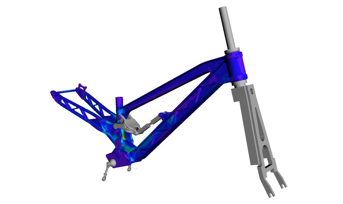 Um virtuelle Lastdaten für vollgefederte Mountainbikes zu erhalten bedarf es eines elastischen Mehrkörpermodels. In dieser Arbeit wurden dynamische Lastfälle von EFBE nachgerechnet und somit das virtuelle Rahmenmodell validiert.