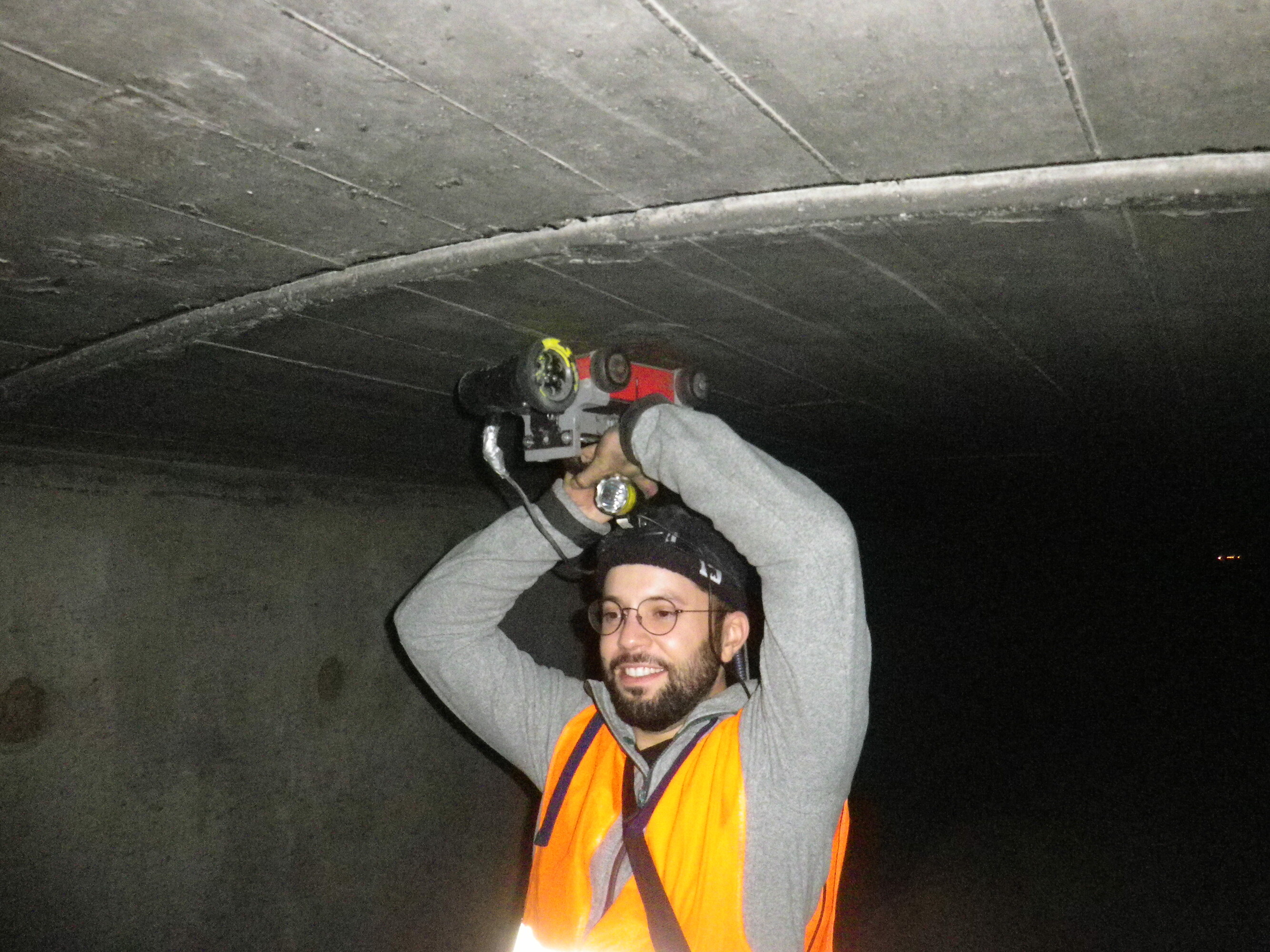 In einem 3.3 km langen Tunnel sollen im First über die gesamte Länge Dübel eingebracht werden. Um die hinter dem Beton liegende Abdichtung nicht zu gefährden wurde die Betondicke untersucht und Bereiche mit zu geringen Dicken ausgewiesen.