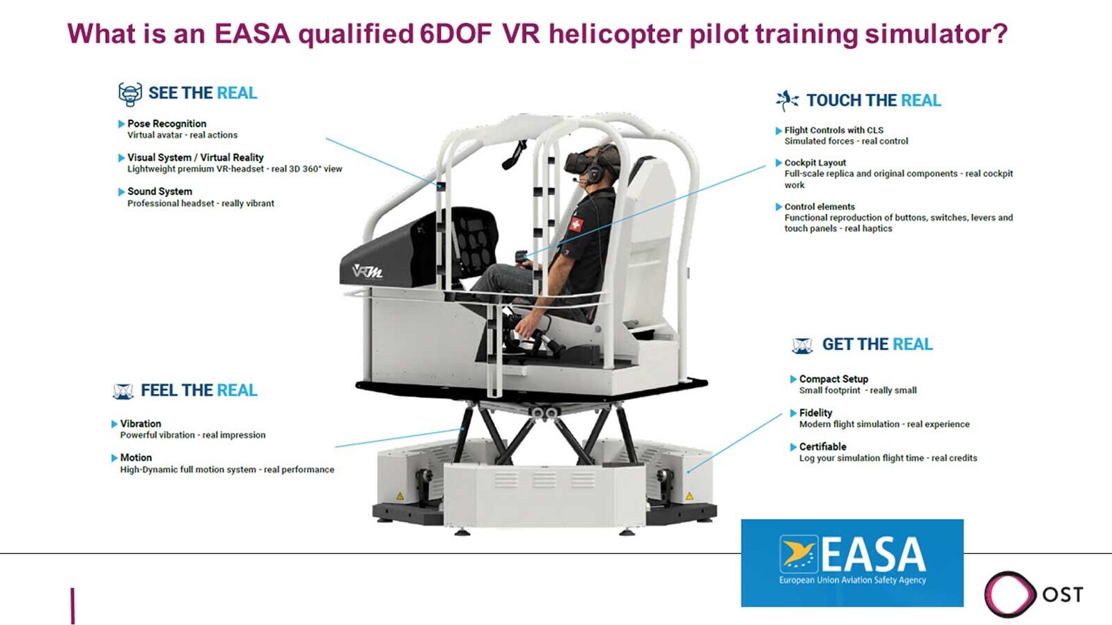 Dank der Qualifizierung der Europäischen Agentur für Flugsicherheit (EASA) können Helikopterpiloten, die im Simulator von Loft Dynamics ihr Training absolvieren, Flugstunden direkt anerkennen lassen. Damit ist Loft Dynamics die die erste und bis heute die einzige Firma der Welt, welcher von einer Flugsicherungsbehörde diese Qualifizierung erhalten hat.
