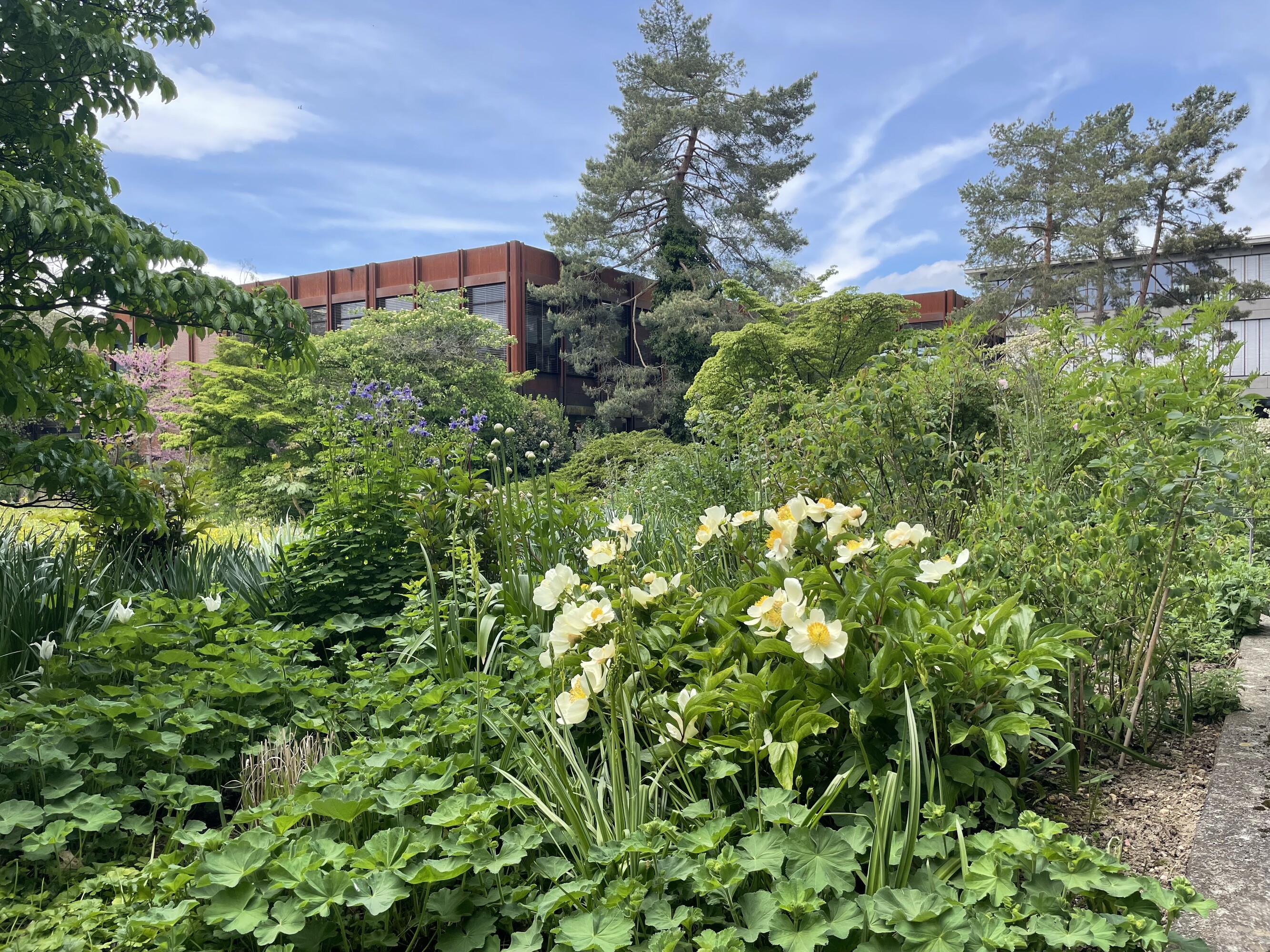 Aufbauend auf den gewachsenen Qualitäten der Aussenräume als Sammlung vieler Pflanzen und als öffentlicher Begegnungsort nutzen wir die Parkanlage des Campus als sogenanntes Freiraumlabor Campus Rapperswil (FCR) gezielt für die Lehre und praxisnahe Forschung und Entwicklung. Die Studierenden können viele Zier- und Wildpflanzen, die sie kennen müssen, auf dem Gelände anhand der beschilderten Namen lernen. Sie erleben die alltäglichen Veränderungen der Pflanzungen und lernen dadurch die praktischen Herausforderungen der Pflege kennen. Studierende finden in den Zierpflanzungen ursprüngliche, evolutionär alte Pflanzenarten wie die einheimische (und nicht essbare) europäische Haselwurz Asarum europaeum mit ihrem pfefferigen Geruch. Sie können aber auch sehr dekorative Wildarten, unter anderem die Schneeweisse Hainsimse Luzula nivea, eine Art unserer Hainsimsen- Buchenwälder und sauren Eichenmischwälder entdecken. In der Forschung erproben wir neue internationale Entwicklungen wie urbane Kleinstwälder («Miyawaki Forests»), Pflanzungen mit essbaren Pflanzen («Food Forests») oder grasfreie, vielfarbige Blütenrasen («Tapestry Lawns»).