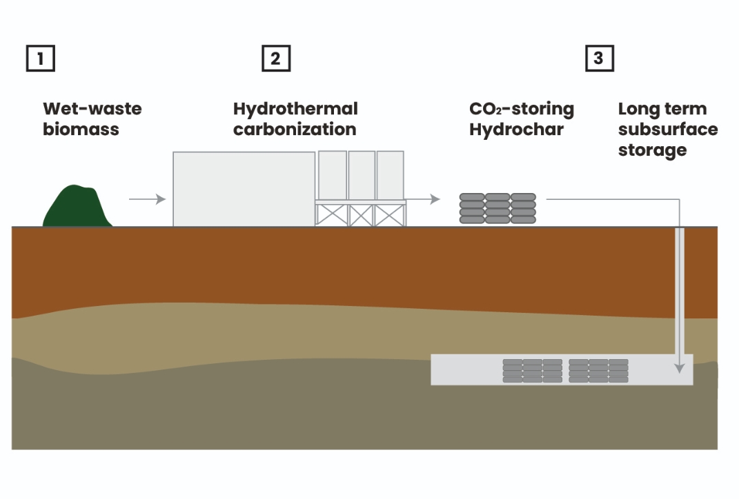 In our project we address this need with a unique “biomass-to-permanent-CDR” pathway. Through hydrothermal carbonization (HTC), wet biomass residues - an abundant and underutilised feedstock - is transformed into stable hydrochar and permanently stored in the subsurface. This approach valorises local biomass streams, avoids competition for valuable dry biomass, and generates measured, reported, and verified certified removal credits with high permanence.