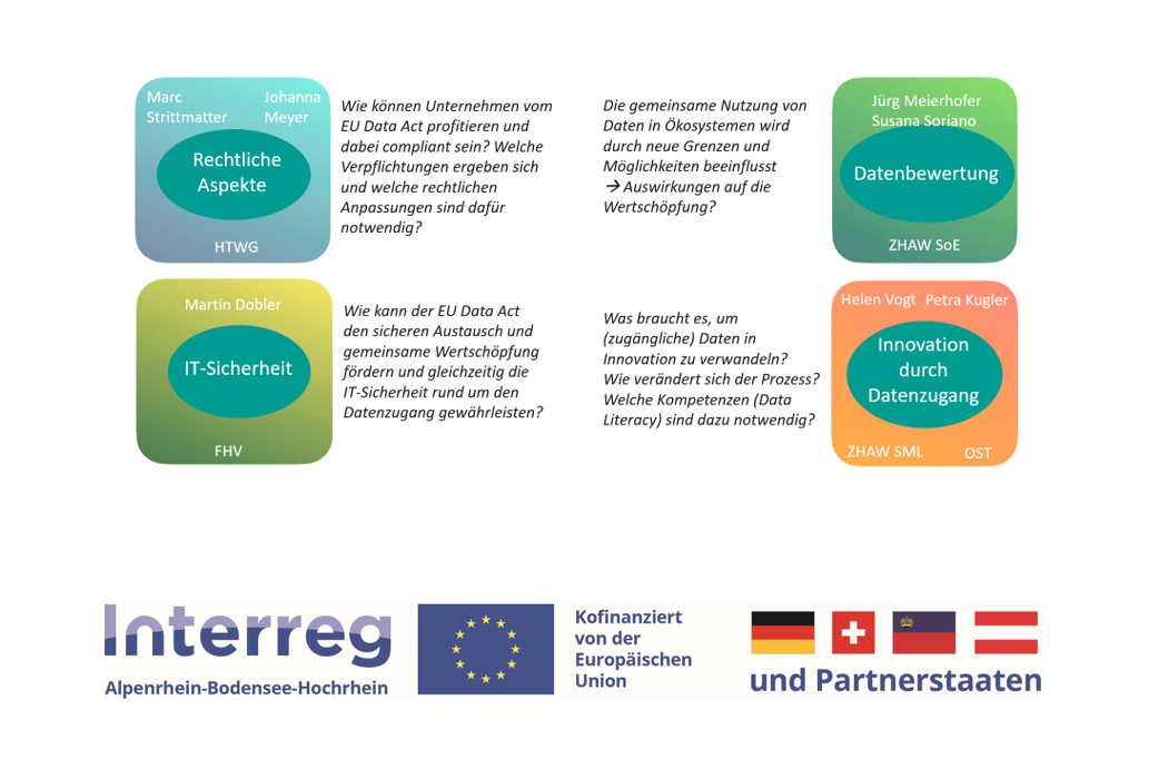 Das Forschungsprojekt „Data Act Pioneer“ erforscht, wie das neue europäische Datenwirtschaftsrecht, insbesondere der Data Act, kleine und mittelständische Unternehmen in der Bodenseeregion beeinflusst. Ziel ist es, die Konsequenzen, Chancen und Herausforderungen aus den Perspektiven von Wirtschaft, Recht und IT-Sicherheit zu identifizieren und innovative Gestaltungsmassnahmen zu entwickeln. Das internationale und interdisziplinäre Projekt untersucht unter anderem, wie die neue Verfügbarkeit von IoT-Daten innovative Geschäftsmodelle ermöglicht, den (Open Data) Innovationsprozess verändert und welche Rolle Daten-Kompetenzen (Data Literacy) dabei spielen.