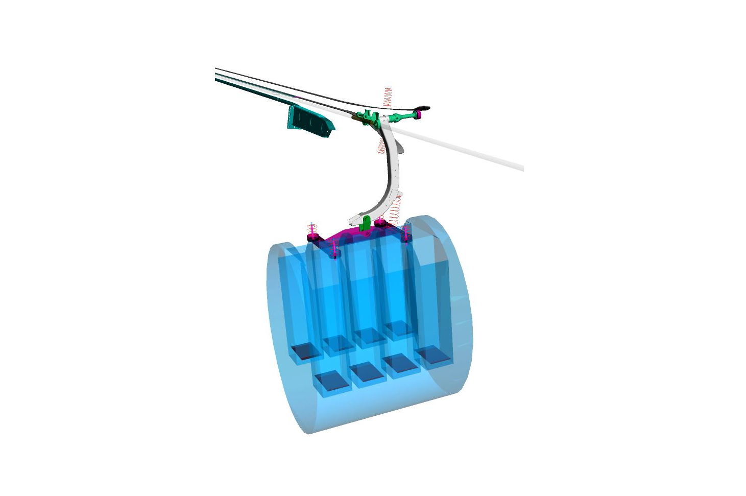 In diesem Projekt wurde ein komplexes Mehrkörpermodell einer bestehenden Seilbahngondel erstellt – der digitale Seilbahn-Zwilling. Das Ziel war es, kostengünstige Massnahmen zu entwickeln, sodass die Stationseinfahrt auch bei wesentlich höherer Anlagengeschwindigkeit sicher und komfortabel umgesetzt werden kann.