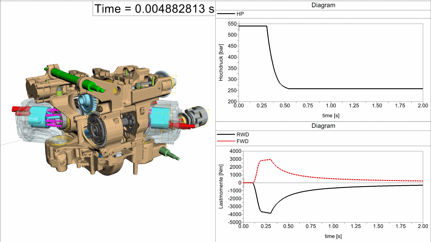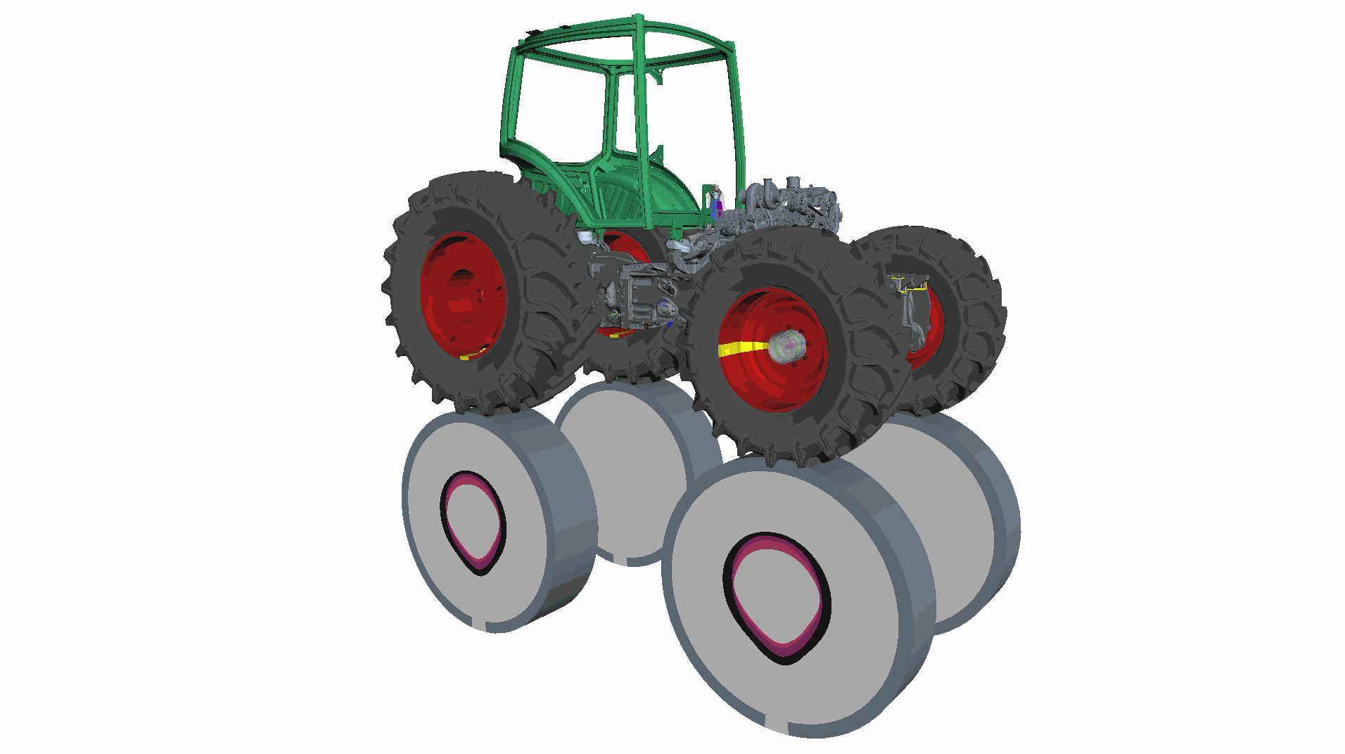 Im Rahmen eines Projektes mit der Firma Fendt wurde ein elastisches Mehrkörpersimulationsmodell eines Traktors anhand von gemessenen Schnittkräften validiert.