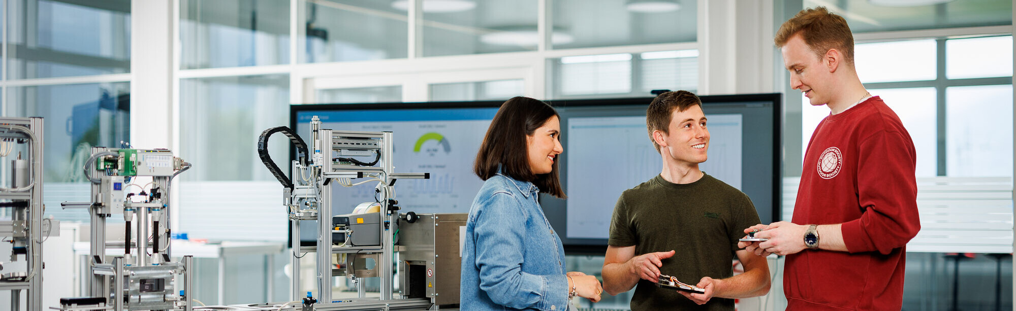 Unser Studium zeichnet sich durch eine ausgesprochene Praxisnähe aus. Der im Unterricht vermittelte Stoff wird in Übungen und Projekten direkt angewendet. Highlights diesbezüglich im Studiengang Mechatronik sind die Hybride Lernfabrik, mit der Sie Methoden der Systementwicklung üben können, sowie das neue REAL Project.