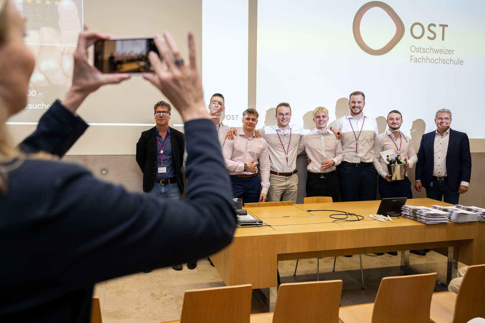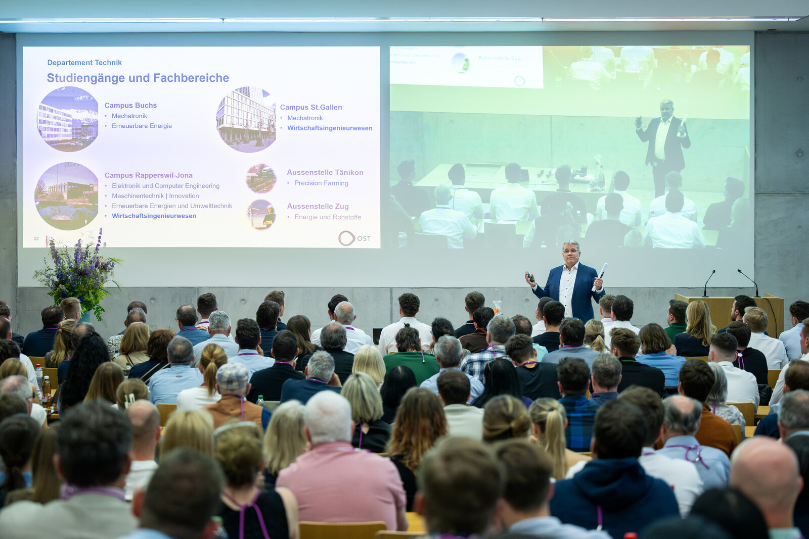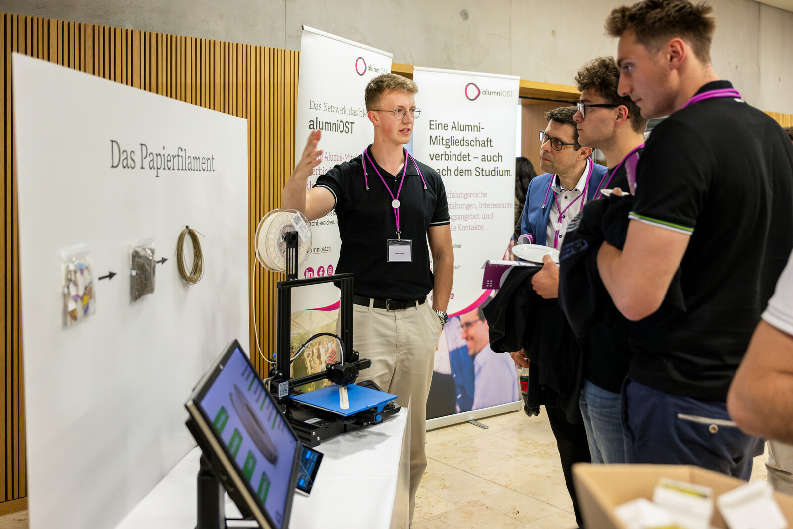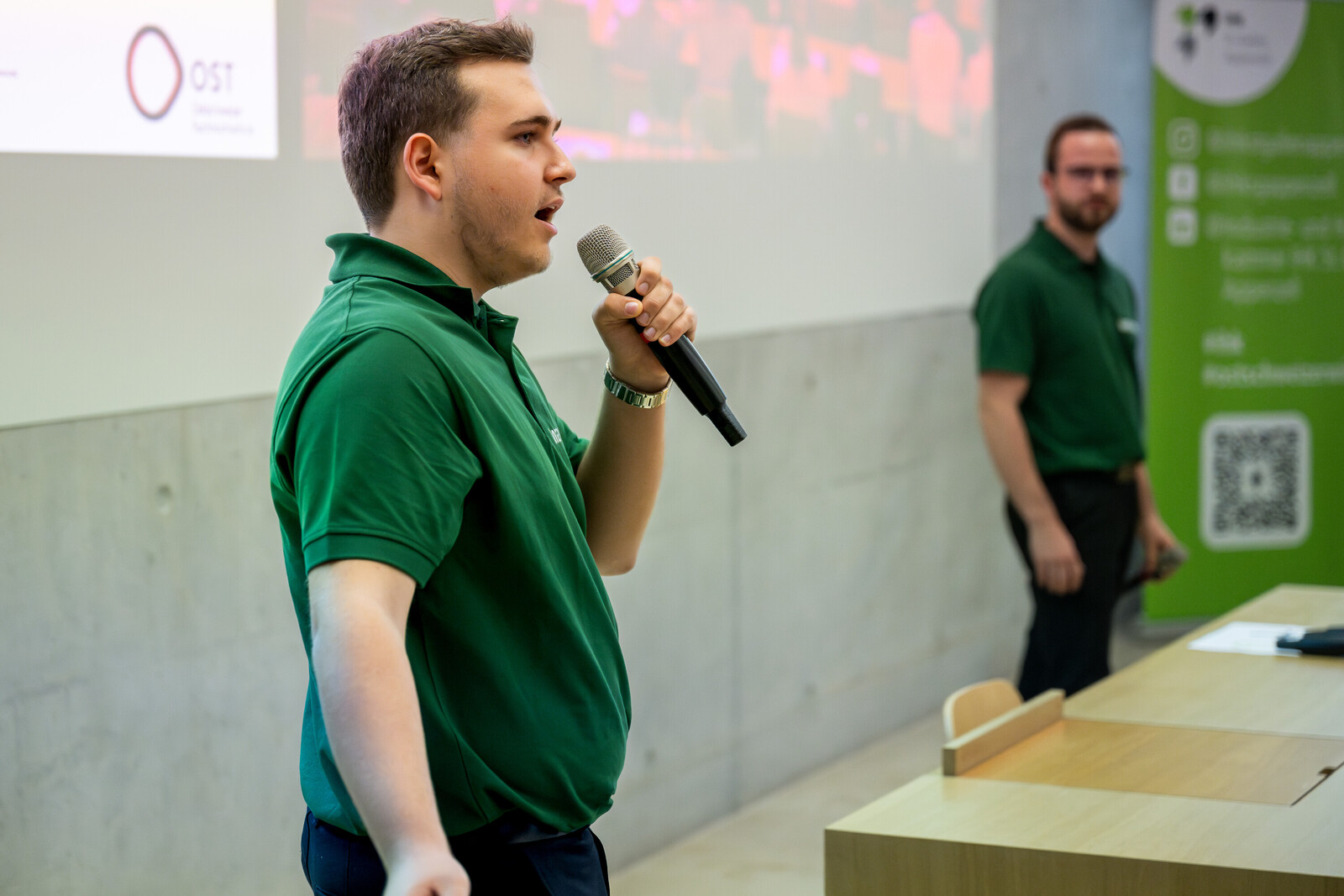 In kurzen Pitchs und einer Ausstellung haben die angehenden Wirtschaftsingenieurinnen und -ingenieure der OST am 5. Juni 2024 ihre Industrieprojekte einem breiten Publikum vorgestellt.