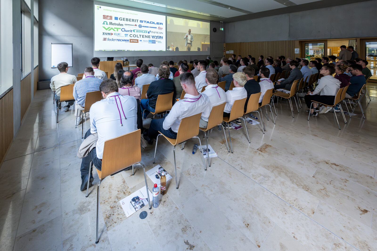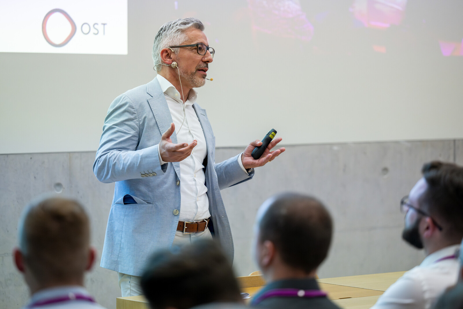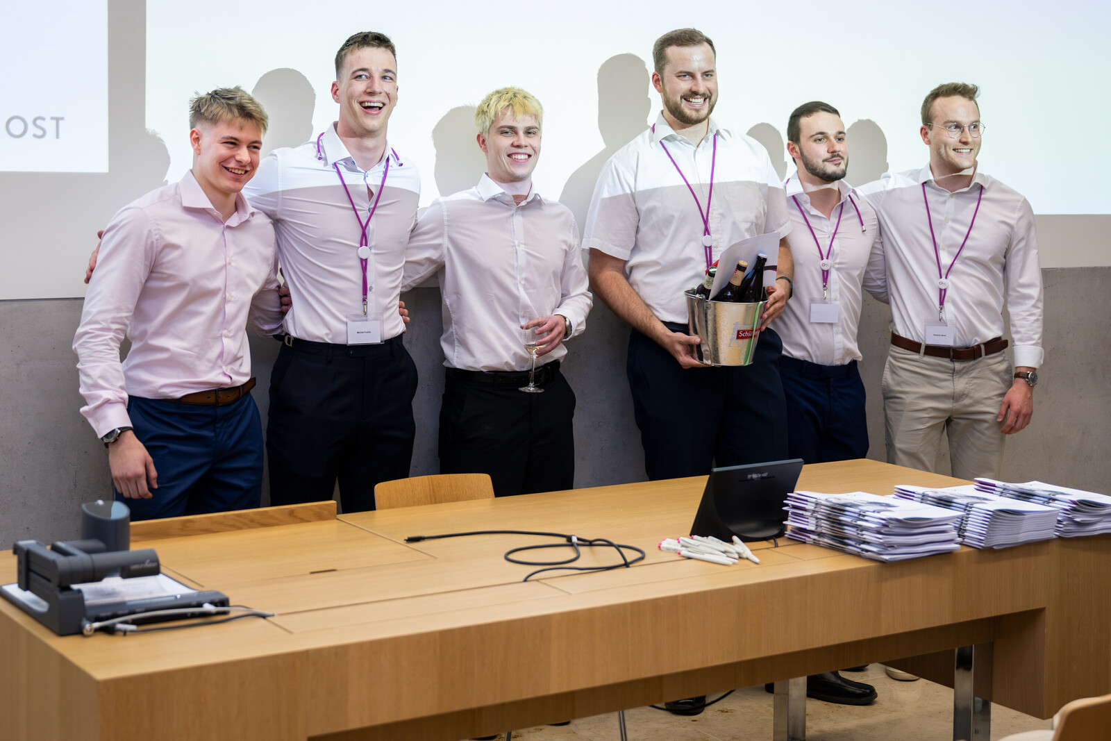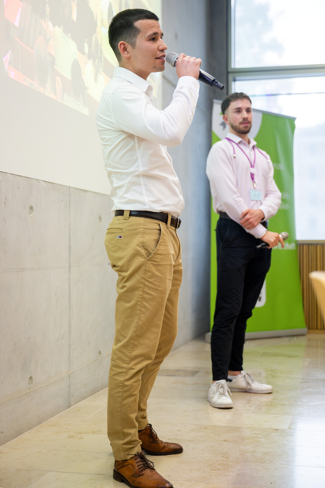 In kurzen Pitchs und einer Ausstellung haben die angehenden Wirtschaftsingenieurinnen und -ingenieure der OST am 5. Juni 2024 ihre Industrieprojekte einem breiten Publikum vorgestellt.