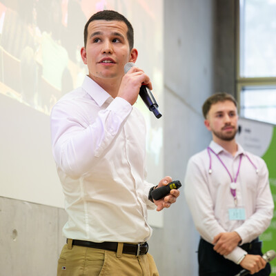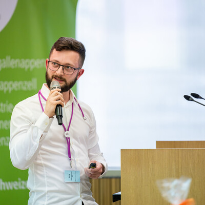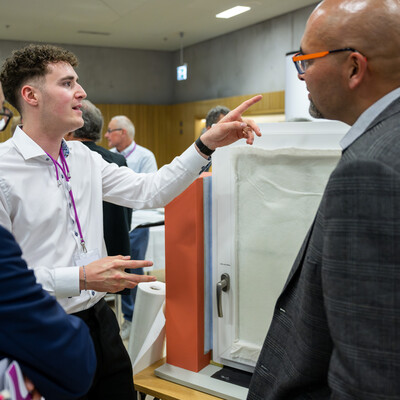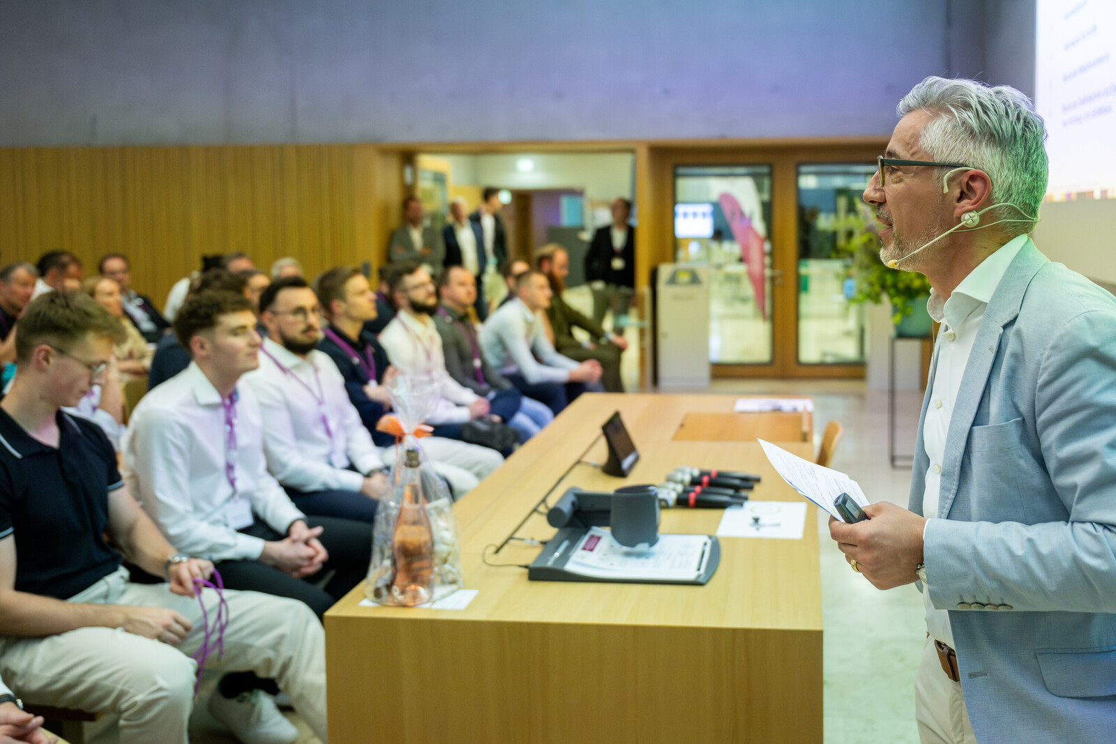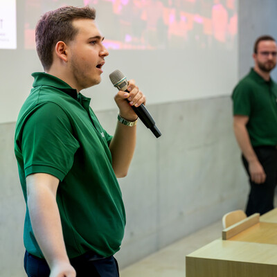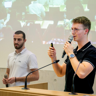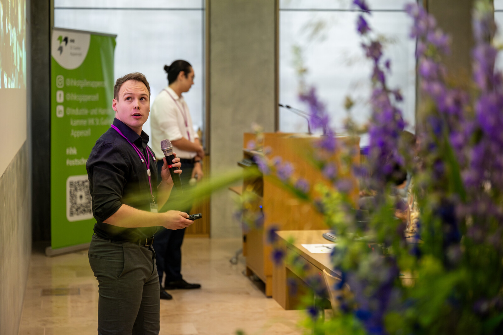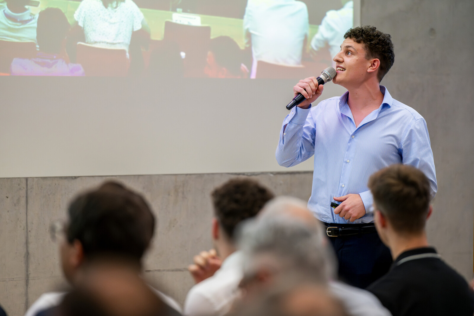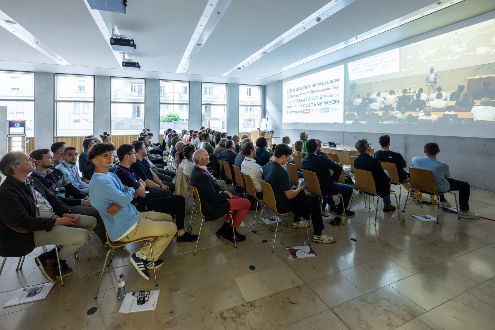In kurzen Pitchs und einer Ausstellung haben die angehenden Wirtschaftsingenieurinnen und -ingenieure der OST am 5. Juni 2024 ihre Industrieprojekte einem breiten Publikum vorgestellt.
